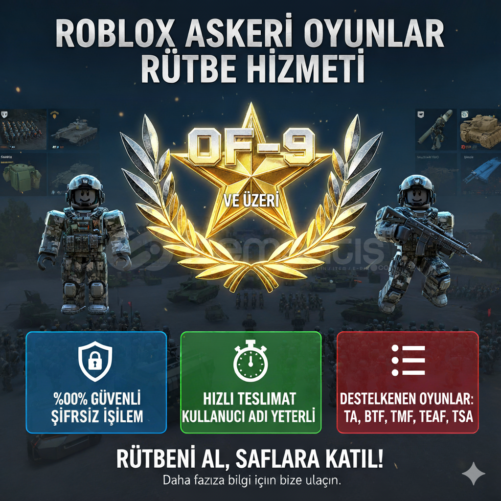 Roblox Askeri Oyunlar | Güvenli OF-9 ve Üstü Rütbe (Rank) Hizmeti mail değişen hesaplar