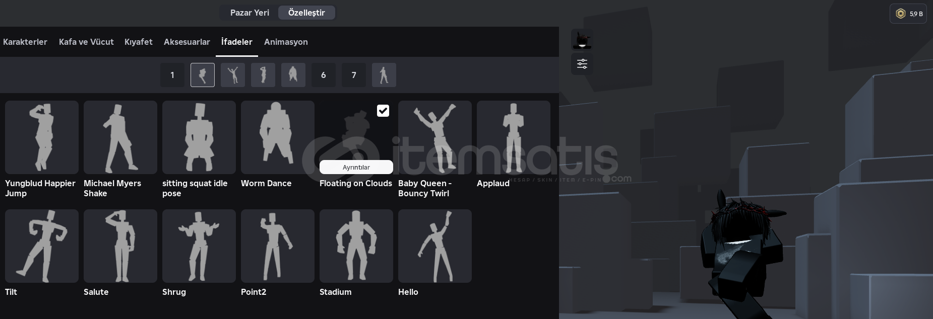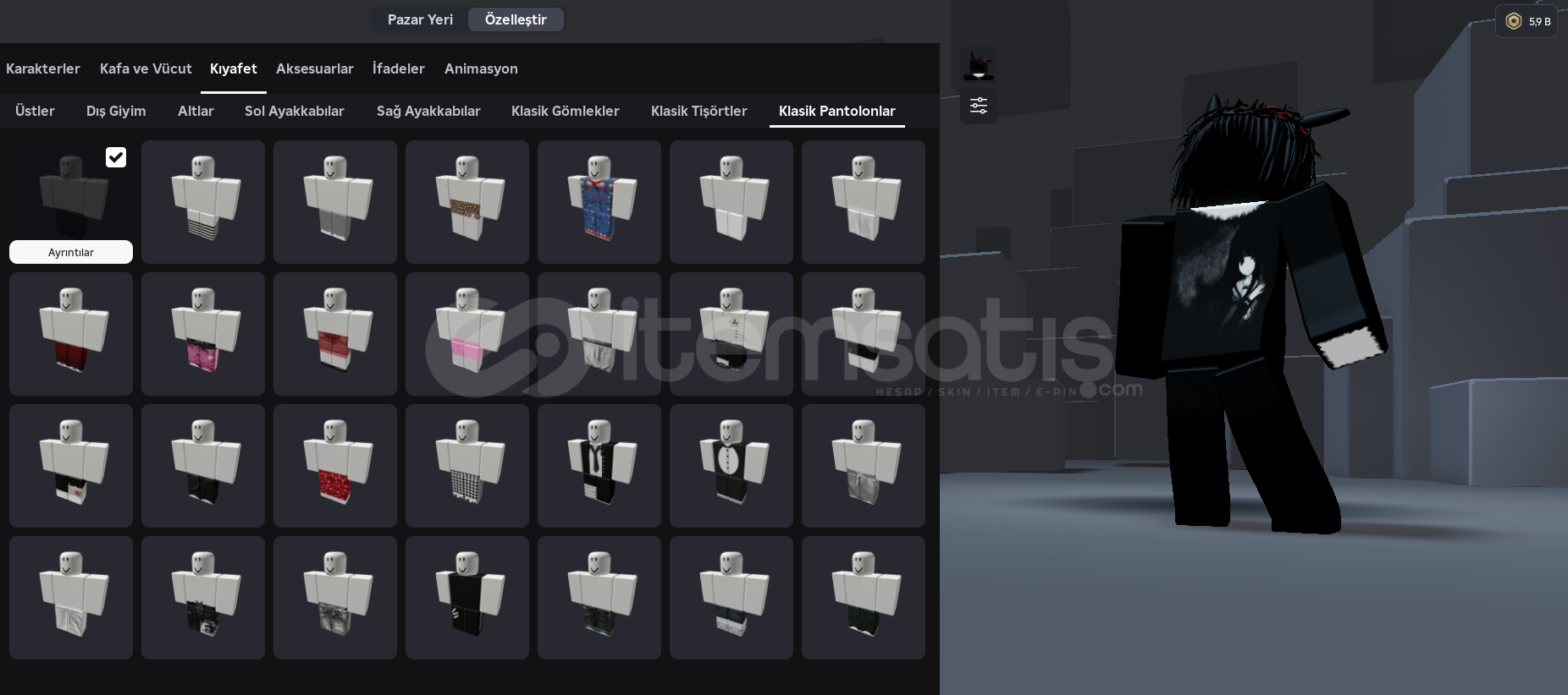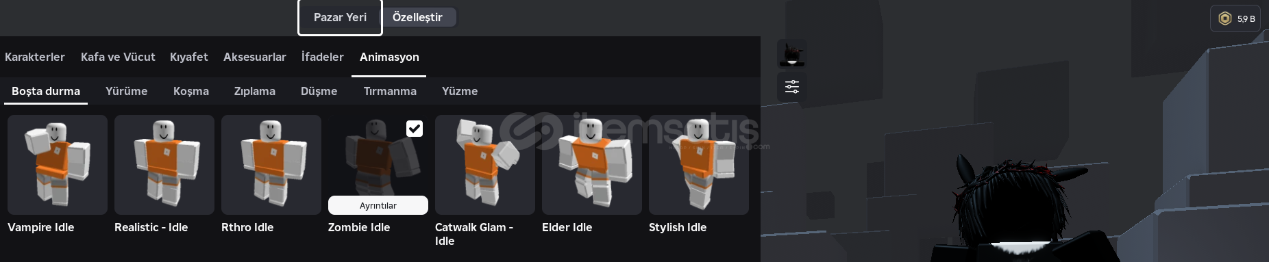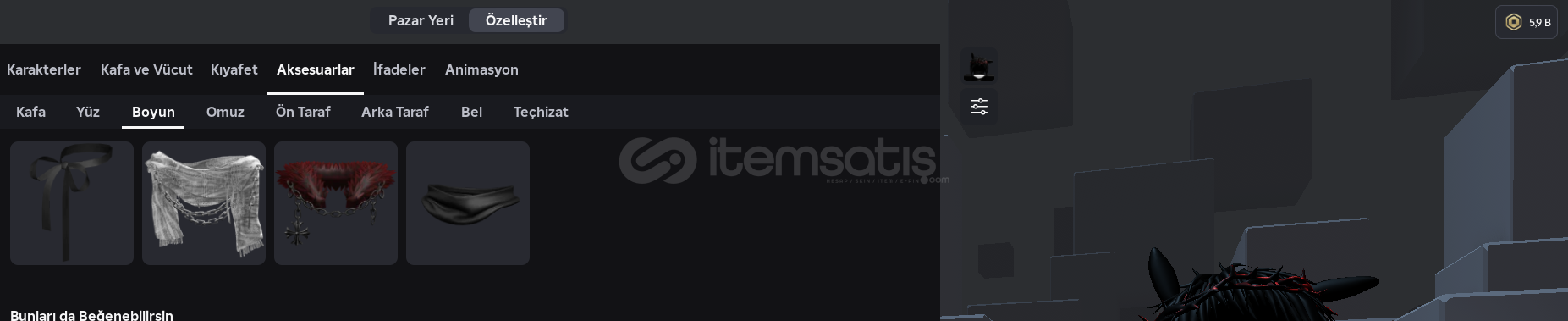 • Hesapta mevcut: Yaklaşık 6.000 Robux
