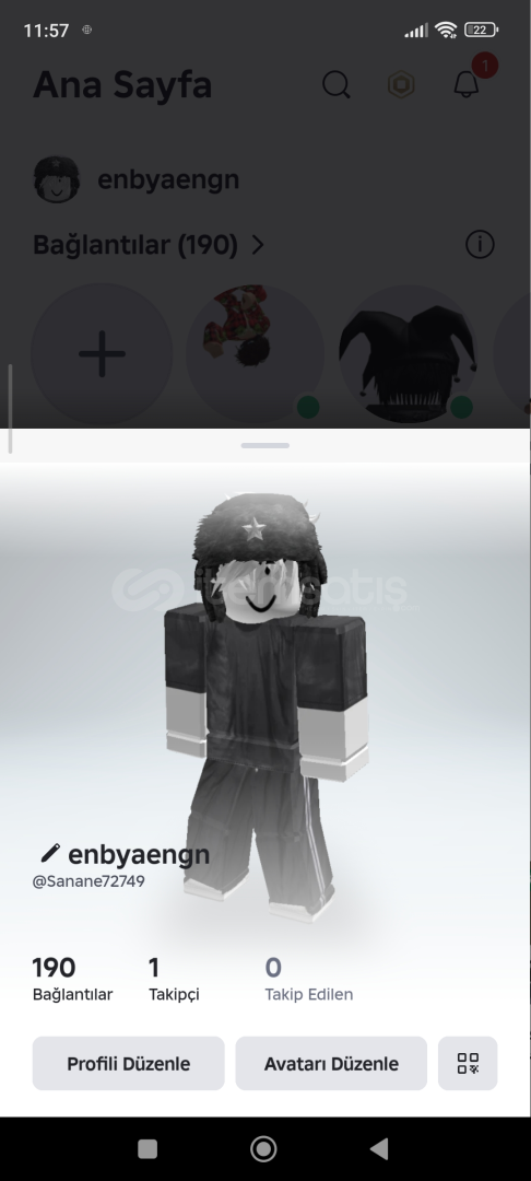 Hesap Kullanıcı Adı:Sanane72749Epostanız alınıp üstünüze yapılacaktır numara doğrulaması yoktur. Toplam 985 robux yaptırılmıştır