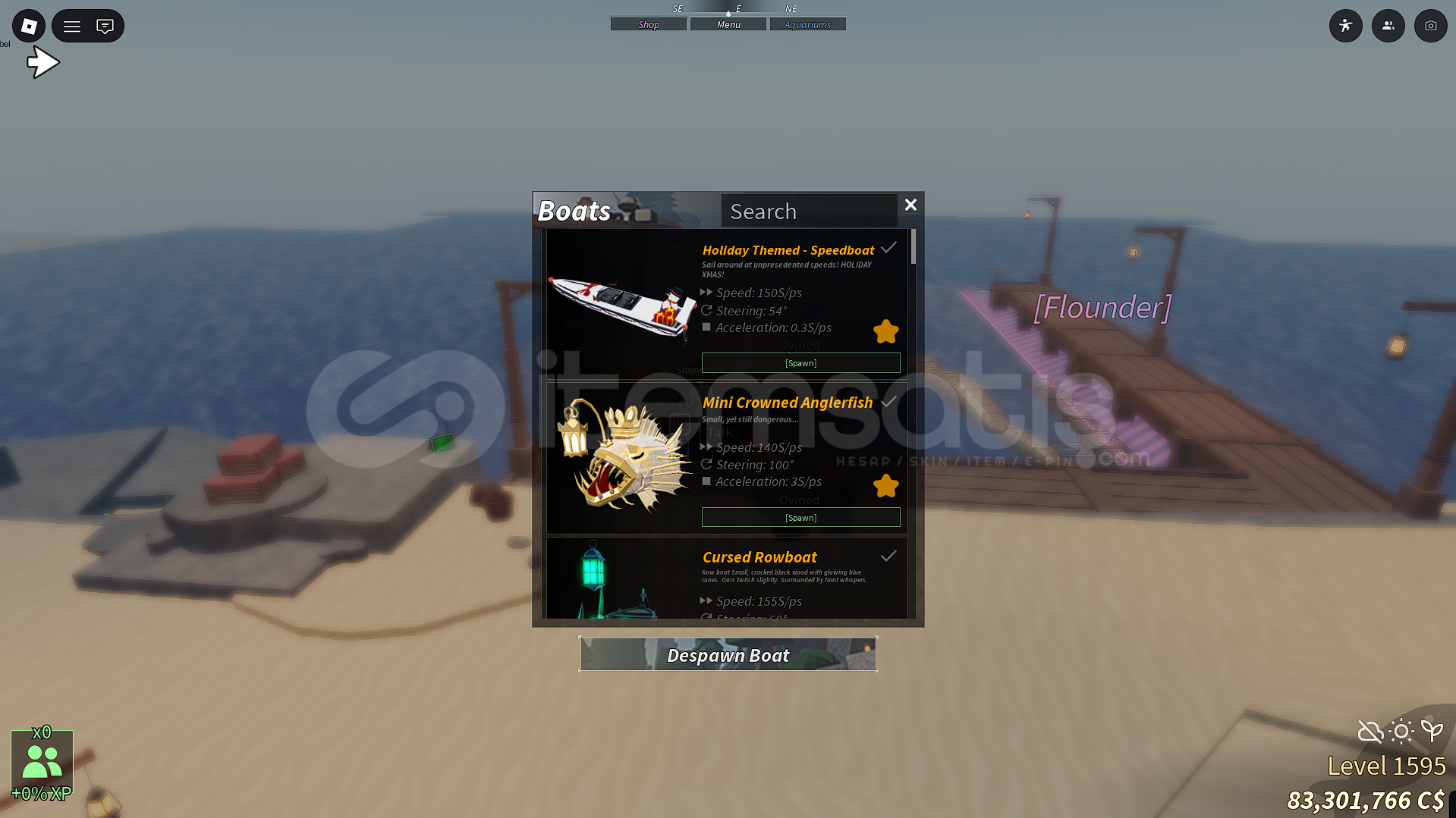 içindekiler;holiday themed speed boatincelemesi:maksimum hız:150psdönme kabiliyeti:54hızlanma:0.3mini crowned anglerfish boatincelemesi:maksimum hız:140psdönme kabiliyeti:100hızlanma:3pscursed raw boat;incelemesi:maksimum hız:155psdönme kabiliyeti:60hızlanma:0.25boatlar trade sistemi ile gerçekleşicektir.