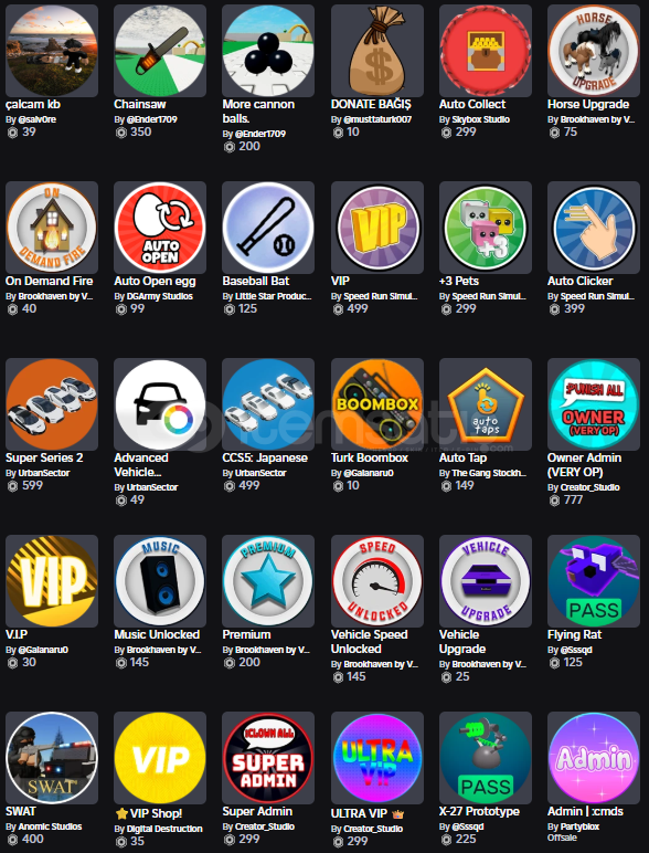 hesapta birsürü gamepass mevcut görselleri inceleyebilirsiniz