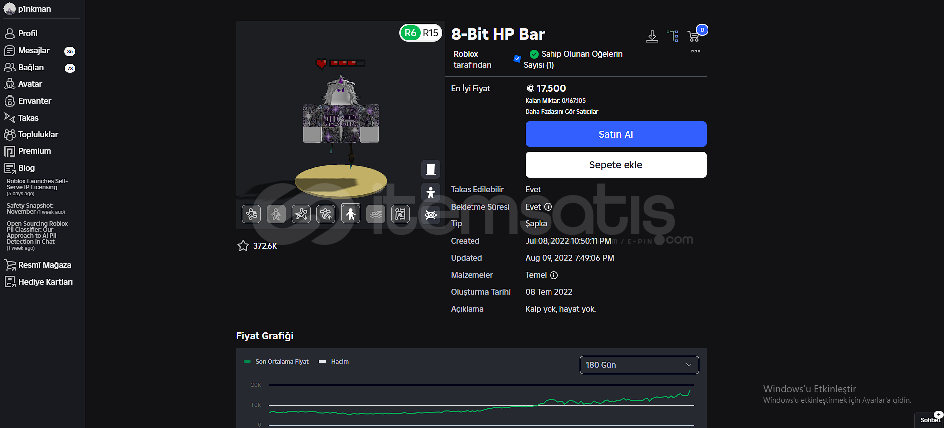 PİNKMAN MARKETİNE HOŞGELDİNİZ! BU AÇIKLAMADA BU İLAN HAKKINDA BİR KAÇ BİLGİ YER ALMAKTADIR.hesapı almadan önce yazın fiyat konuşalımTESLİMATI NASIL MI YAPIYORUZ?ilanı satın aldıktan sonra size hesap ismini ve şifresini iletiyoruzhesapa giriş sağladığınızda bilgileri kendi üzerinize alıyorsunuzHESAP HAKKINDA BAZI BİLGİLER:korblox & limited ...
