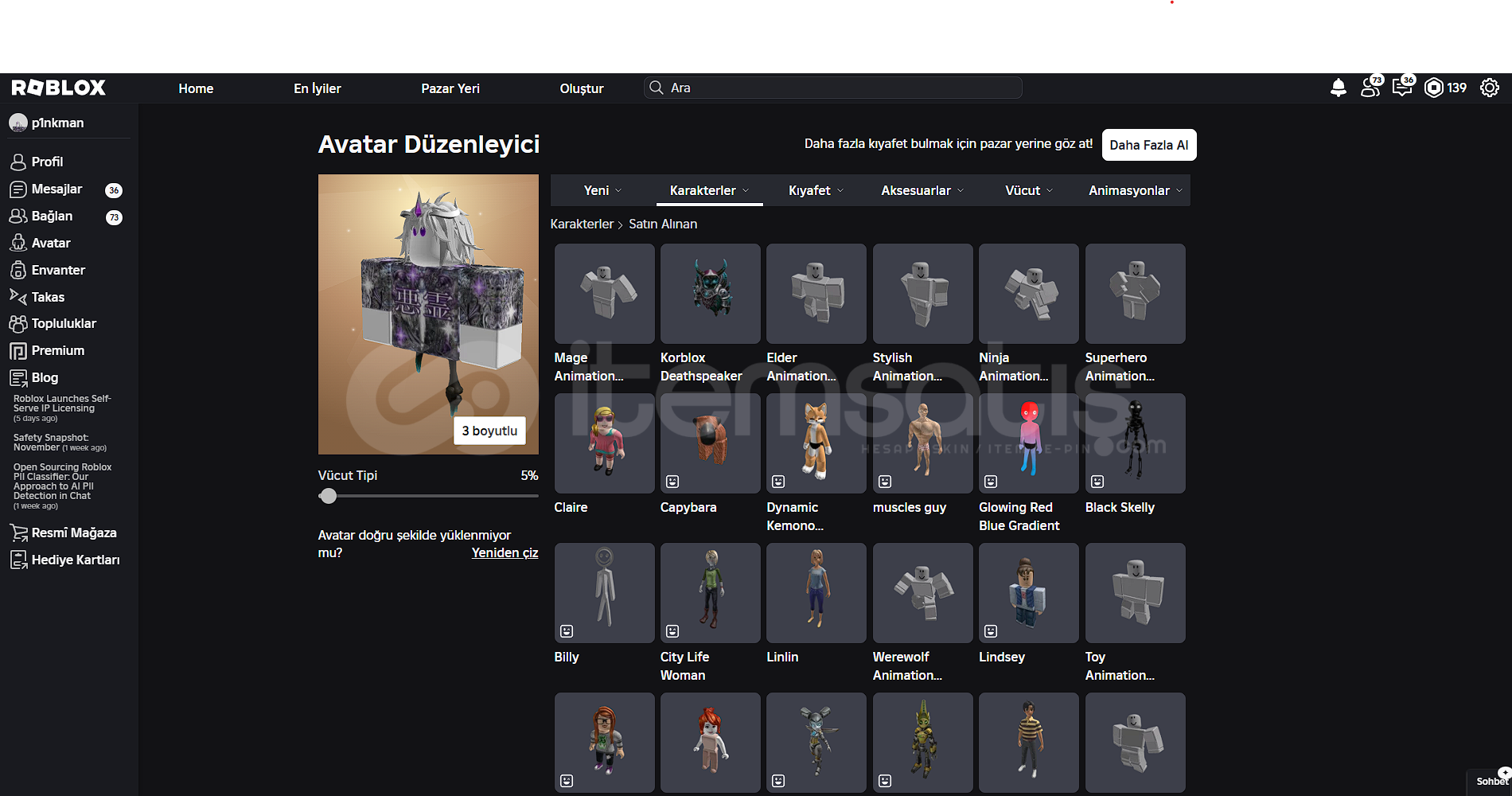 • bir sürü animation pack vardır (totalları 2-3k ya yakın robux ediyor)