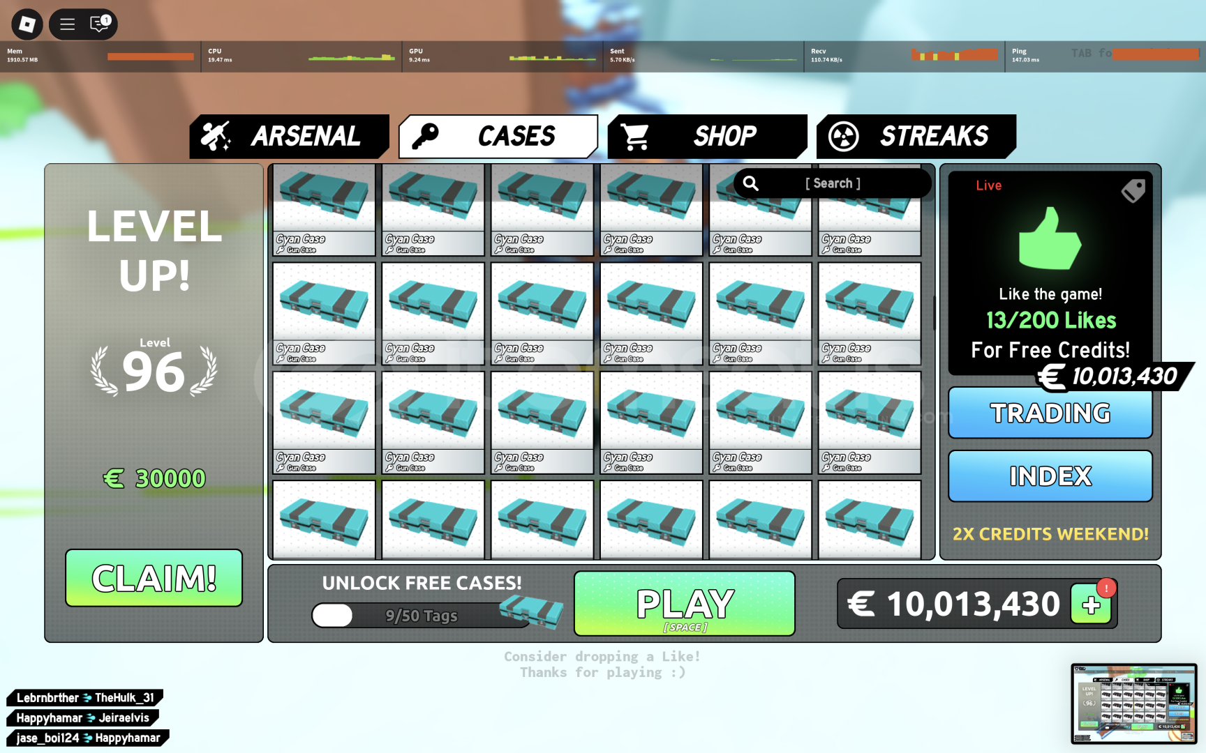 RIVALS VE NINJA LEGENDS YOK BIG PAINTBALL 2 15M+ HESAP ÇOĞU OYUN COK OYNANDI 2023 TARIHLI HESAP YAKLAŞIK 1800 ROBUX DEĞERINDE 6 TANEYE YAKIN OFFSALE VAR DEĞERLİMİ BİLMİYORUMMAIL TESLİMLİ BIG PAINTBALL 2 505+ LEVEL