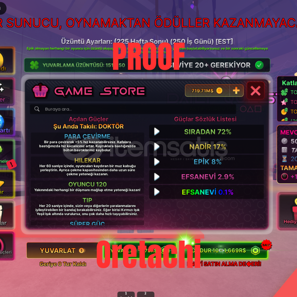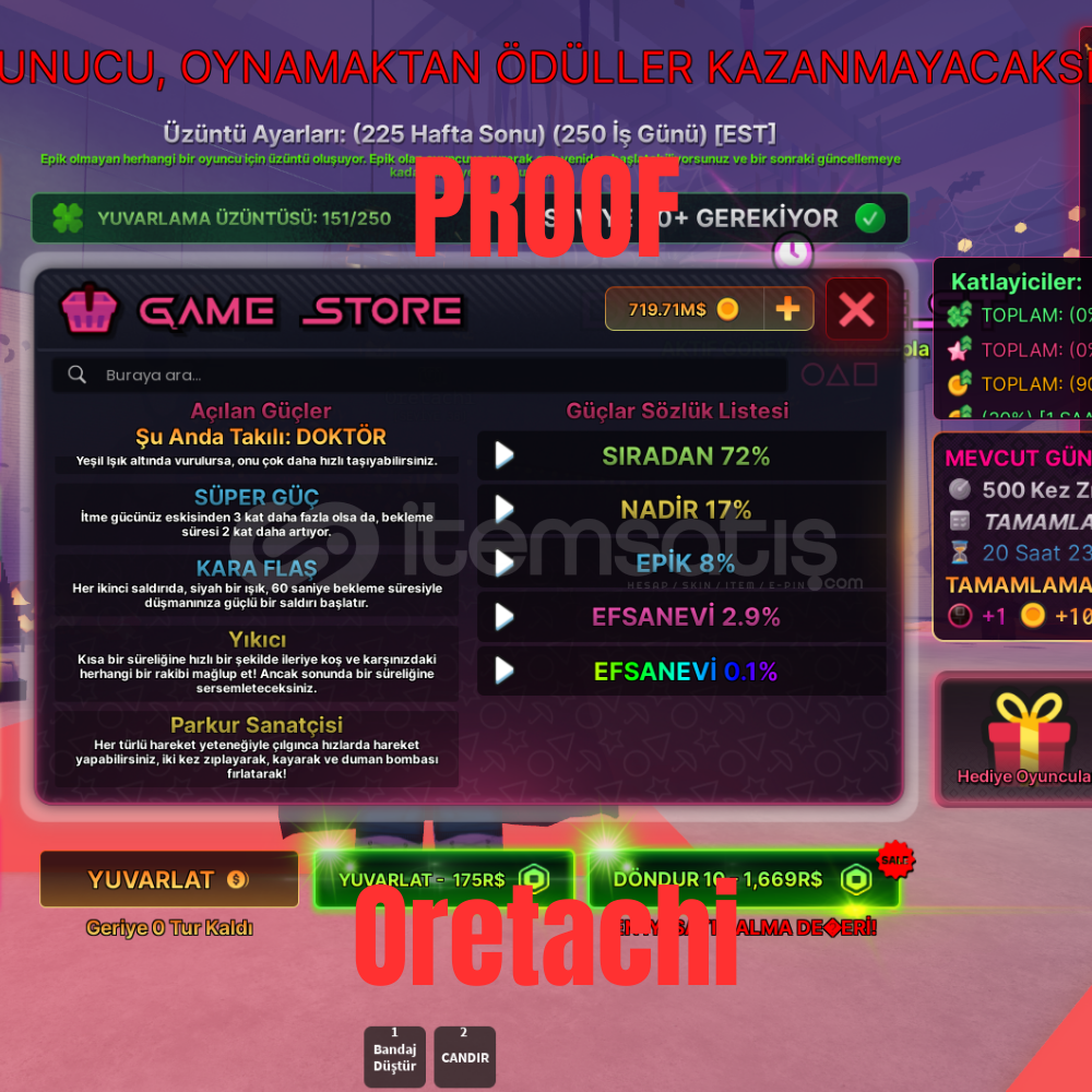 -Roblox içinde bulunan bir oyun Online-Rekabet tabanlı oyun olan INK GAME üzerinde ilanda yazdığı şekilde oyunları kazanmanıza yardımcı oluyorum--"Proof Oretachi" yazmasına rağmen neden kullanıcı adım "Mingatto0"? Bu tamamen kendi yaptığım bir tık saçma bir karar. Bu hesabın kullanıcı adını Oretachi yapacak paramda olmadığı için böyle ka...