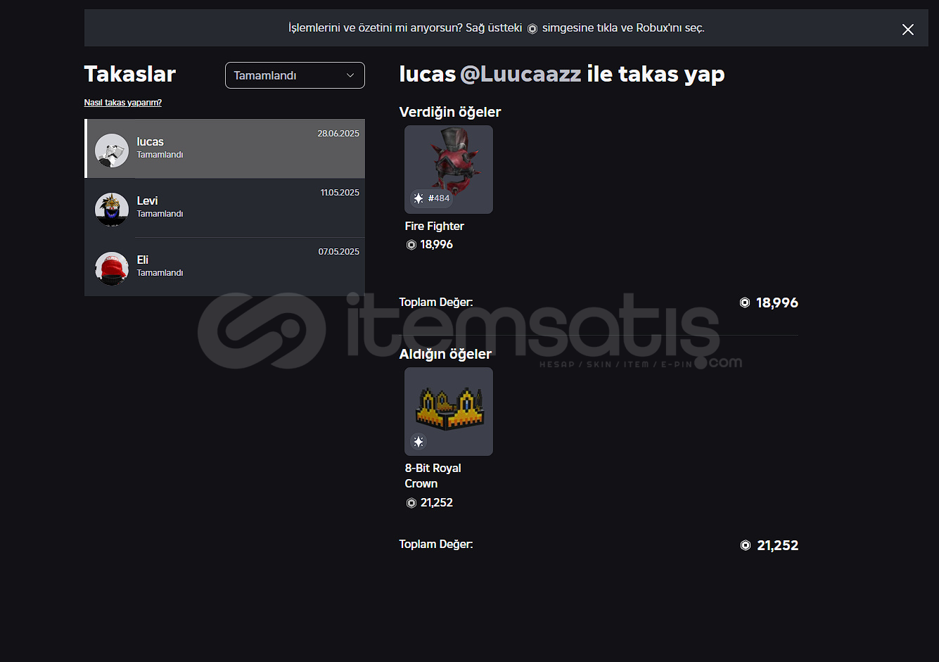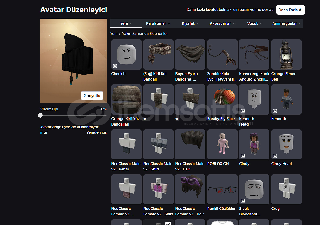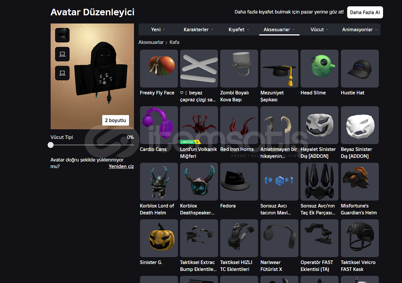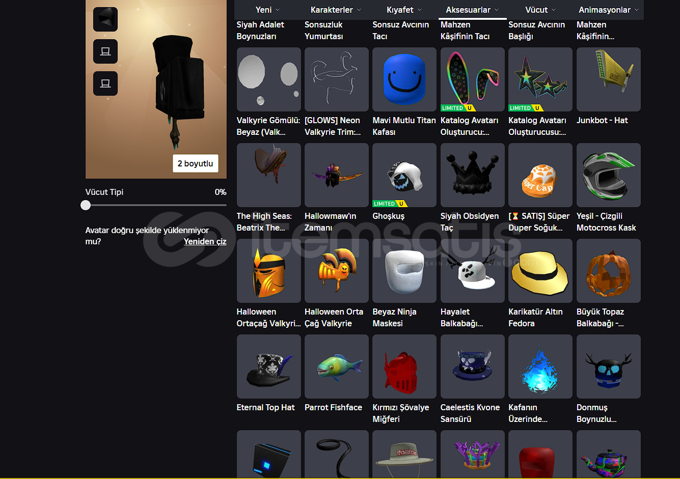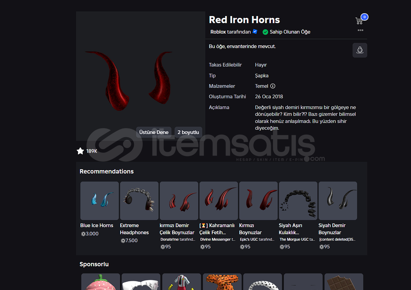 totali 100k+ korblox ve limitedli bir hesapred horns vardır (3.5k vp)birçok oyunda gamepasse sahiptir ( the stroungest battlegrounds çok oynandı hesapta:)geri çekilme gibi bi durumu soz konusu degil arkadaşlar hesap benim üzerimeson 1 yıl 70k gosteriyor ama 2 yıl falan oynandı hesap 100-130k arası bi totali varhesap daha once limited itemlere sahip oldugu için favori kısımlarda itemler hala duruyor(hesap pahalı vs...