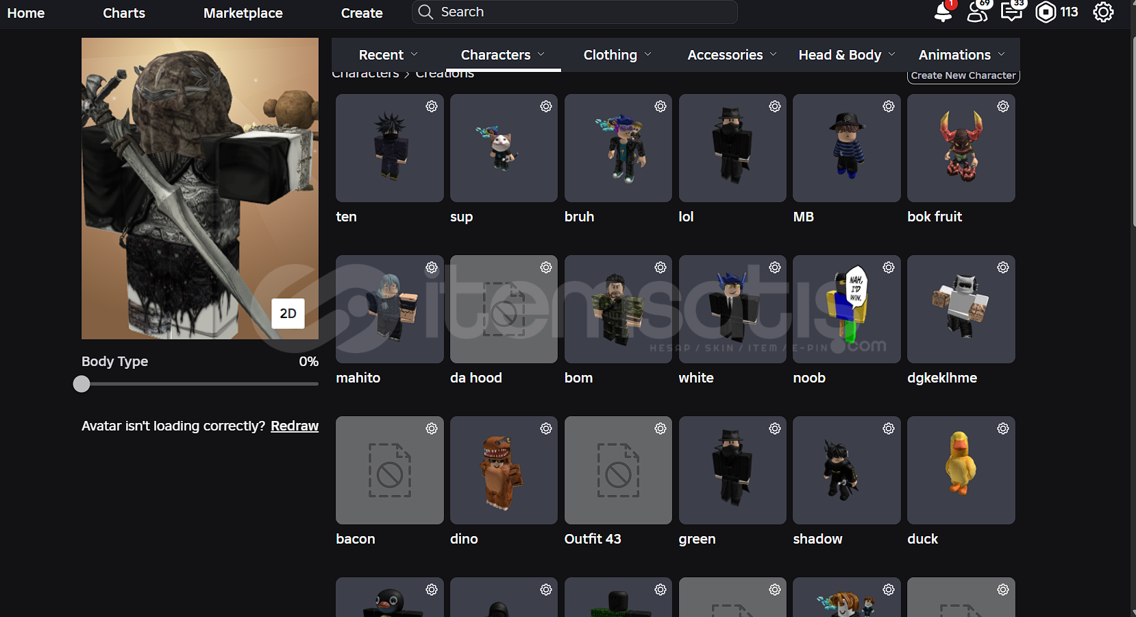 icinde 113 robux vardır