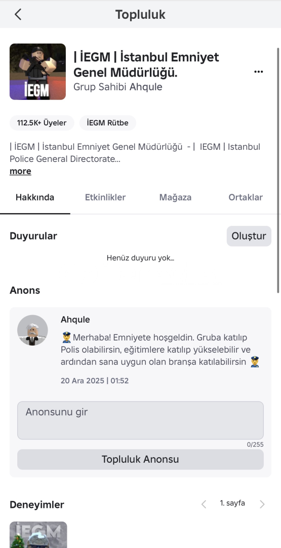 iegm İstanbul emniyet genel müdürlüğü112k lık ana grubu bot yoktur bütün şube grupları eksiksizdir ehliyet gurubu var discord grupları var hepsi eksiksiz ayarlı Rowofi ayarlı dc sunucusu 850 kişidir 20x takviye vardır içinde aktif kampdır hala 25-30 denetimlerde 60 çekmektedir sorunsuz şekilde teslim edilcektirşube dc grupları vardır eksiksizroblox grupları eksiksizrobux ka...