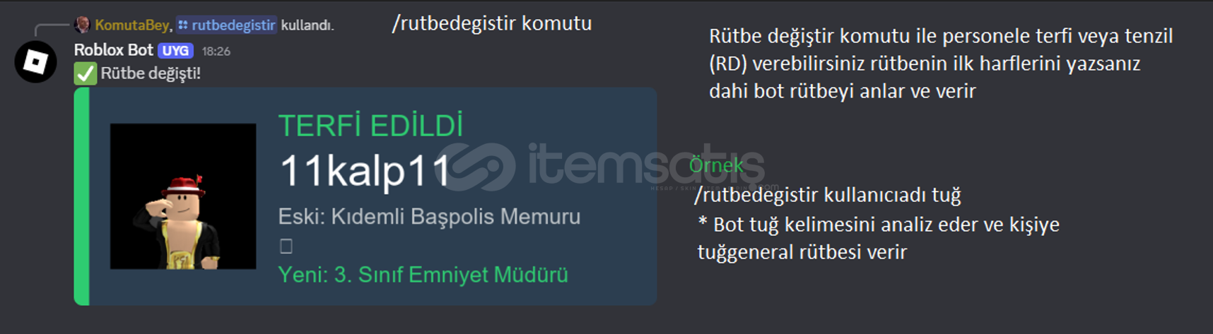 🔄 /rutbedegistir: Akıllı sistem ile isme göre rütbe atar. (Özel Resimli Kart Üretir)