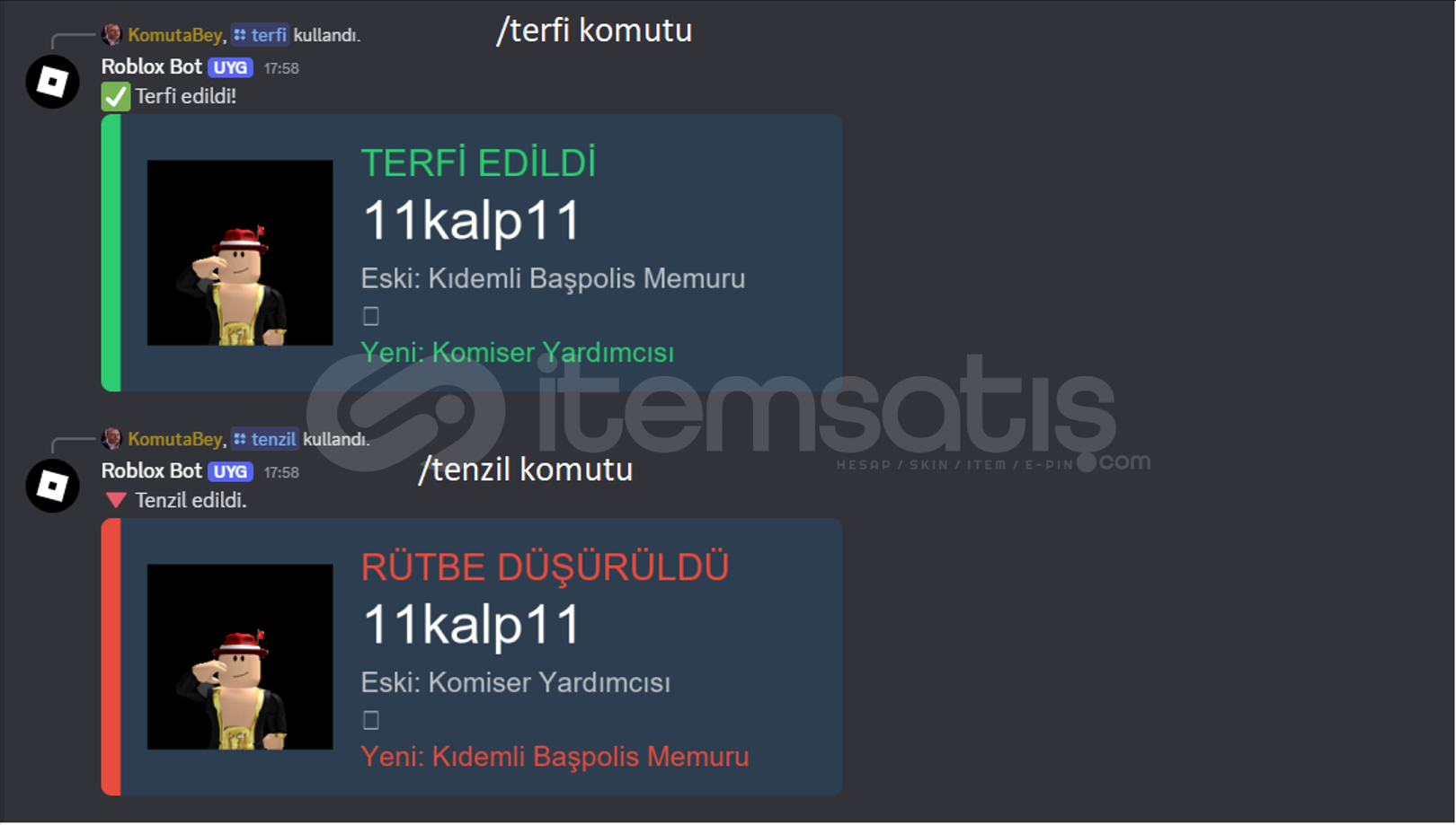 ⬆️ /terfi: Personeli terfi ettirir. (Özel Resimli Kart Üretir)