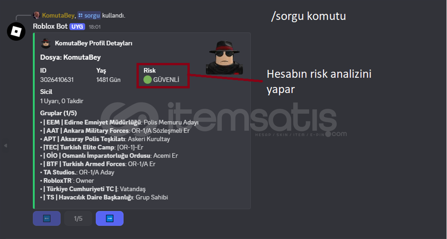 🔍 /s@rgu: Hesap yaşı ve hesabın oyununuz için risk durumunu (Güvenli/Riskli) analiz eder.