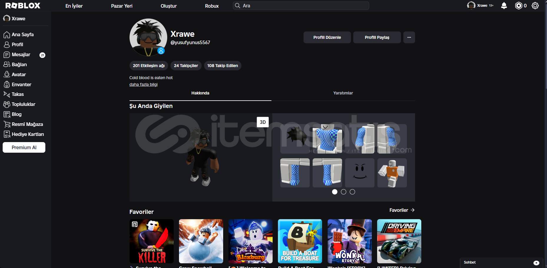 En az 10k yatırılmış ucuz roblox hesabı oyunlar genellikle dolu rozetler vs