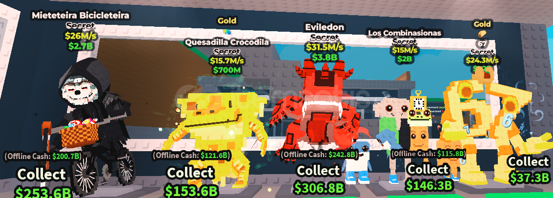 Eviledon (normal)Mieteteira bicicleteira (normal)6 7 (Gold ve Taco)Los Combinasionas (Normal)Quesadilla Crocodila (Gold Ve Glitch)Almadan Önce Bana YazınızBen Çevrim içiyken alınızTekli Olarak Satılır