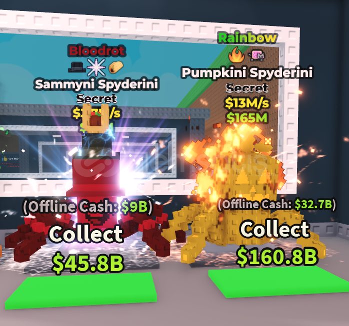 » Görseldeki Bloodrot Sammyni Spyderini ve Rainbow Pumpkini Spyderini brainrotları teslim edilecektir.