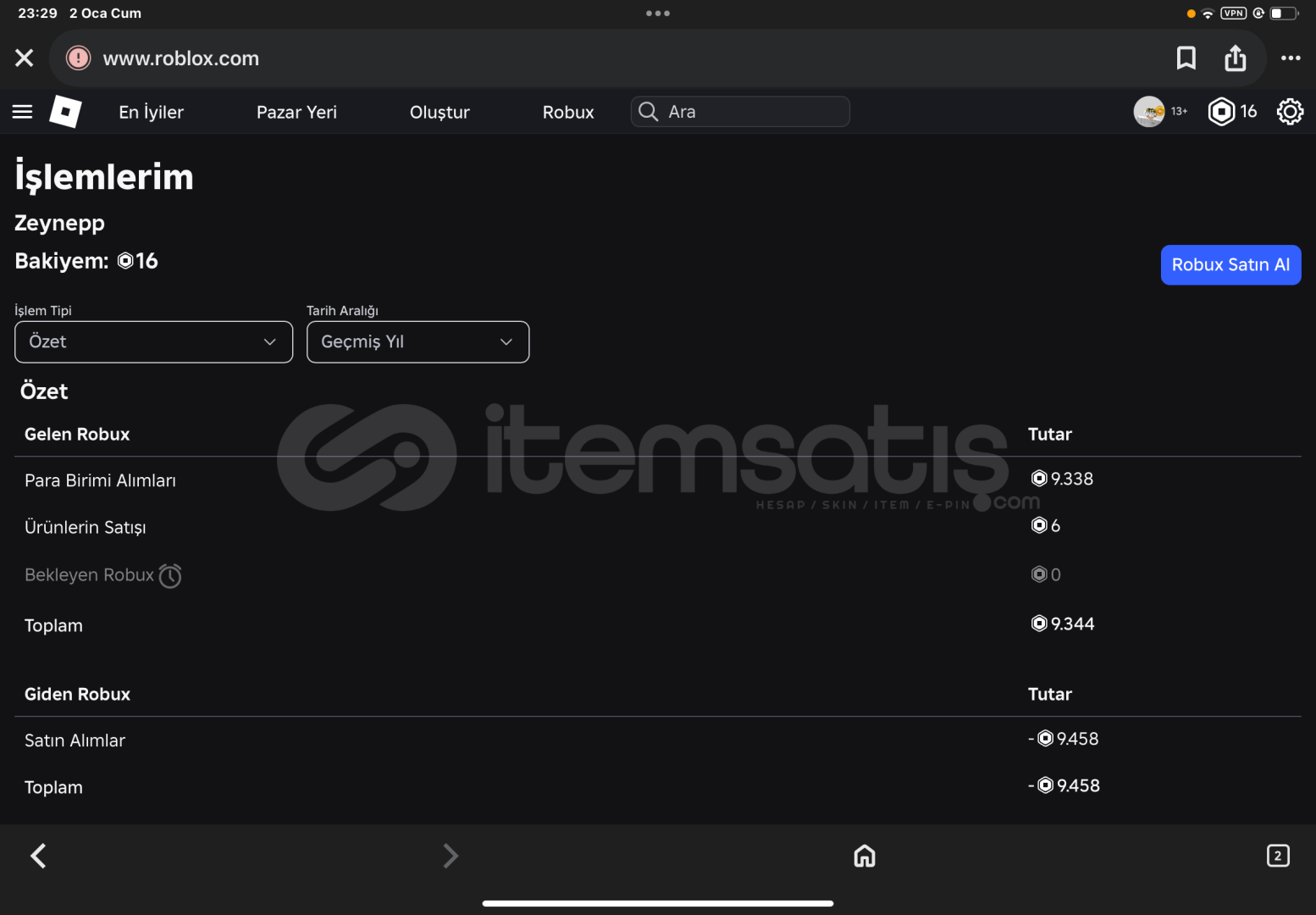 Satıșa kapalı ürünle dolu 9500 robux yatırılmıș