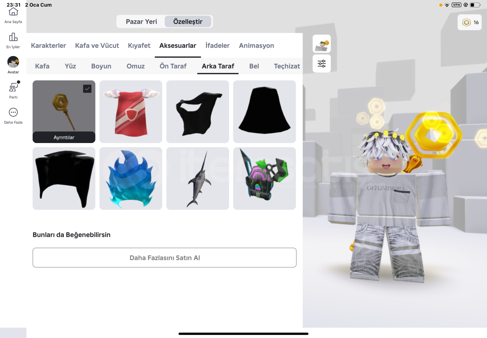 hesapta sınırlı satın alınamayacak ürünler mevcut onlardan biri staff of robux royalty (değerli)