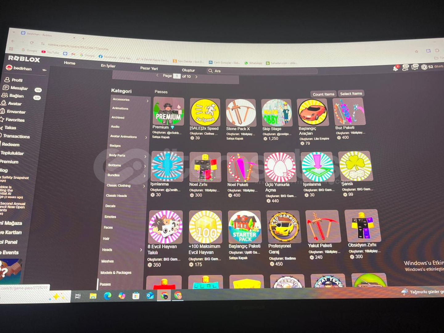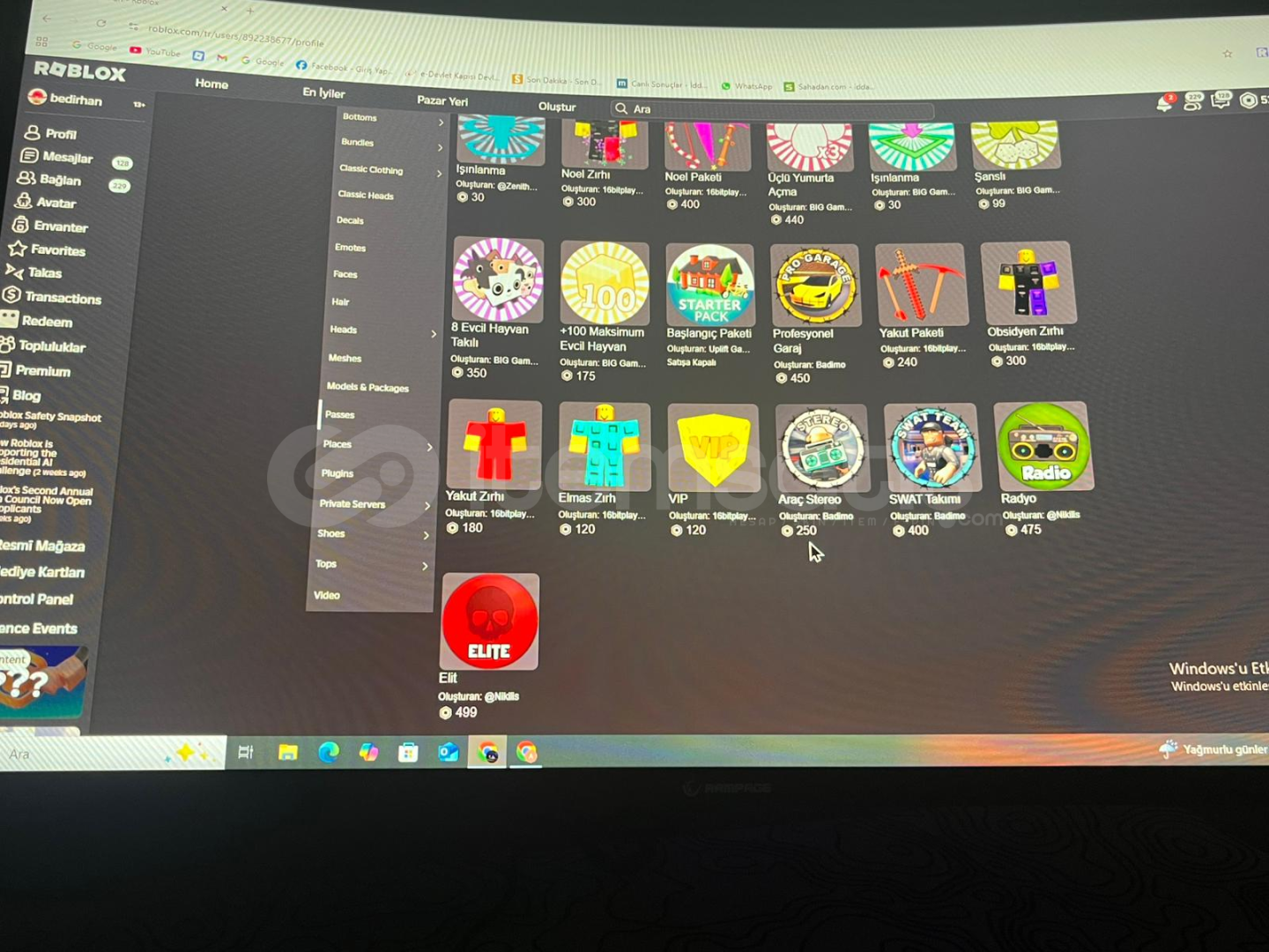 ROBLOX HESAP FIRSAT KAÇMAZ UYGUNA İNDİRİM YAPILIR ! HESABIN İSMİ bedirhannino9077 İÇİNDE MM2 VE PS99 DOLUDUR ALANA HAYIRLI OLSUN ŞİMDİDEN HER OYUNDA DOLU DOLU EŞYALAR BULUNMAKTADIR VE HER OYUNDA PASS AÇIKTIR TOTALİ 20K DIR