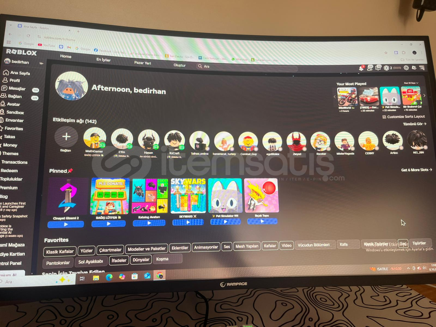 ROBLOX HESAP FIRSAT KAÇMAZ UYGUNA İNDİRİM YAPILIR ! HESABIN İSMİ bedirhannino9077 İÇİNDE MM2 VE PS99 DOLUDUR ALANA HAYIRLI OLSUN ŞİMDİDEN HER OYUNDA DOLU DOLU EŞYALAR BULUNMAKTADIR VE HER OYUNDA PASS AÇIKTIR TOTALİ 20K DIR