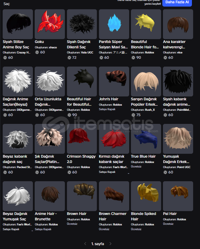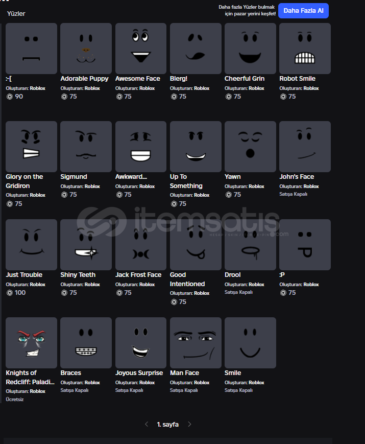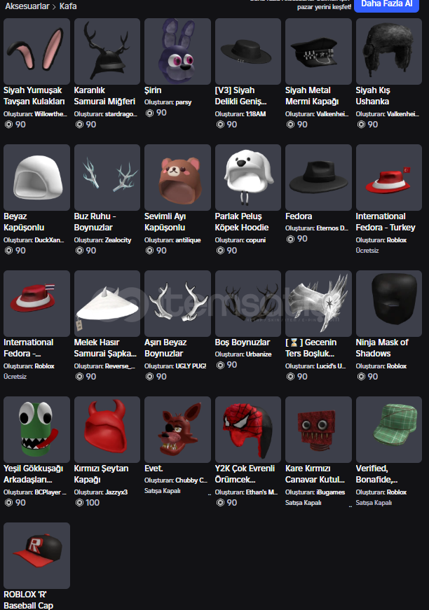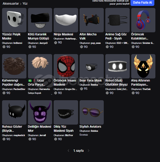 Görsel konulma sınırından dolayı görsellerini koyamadığım birkaç robuxlu eşya: