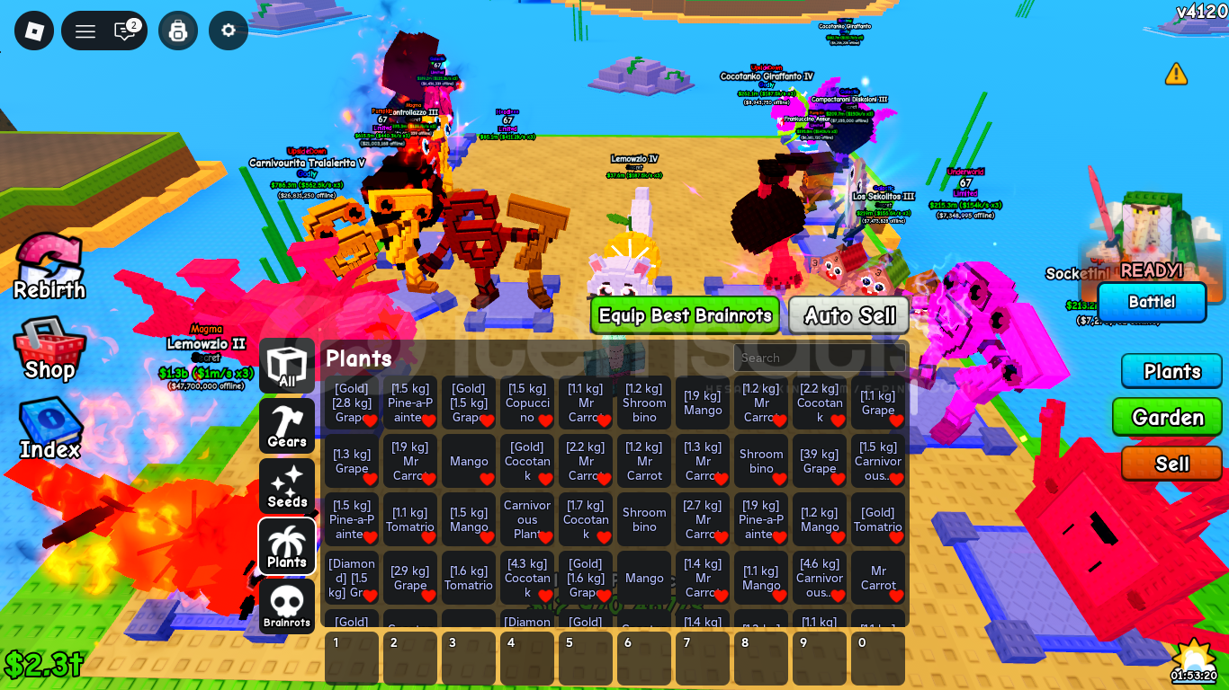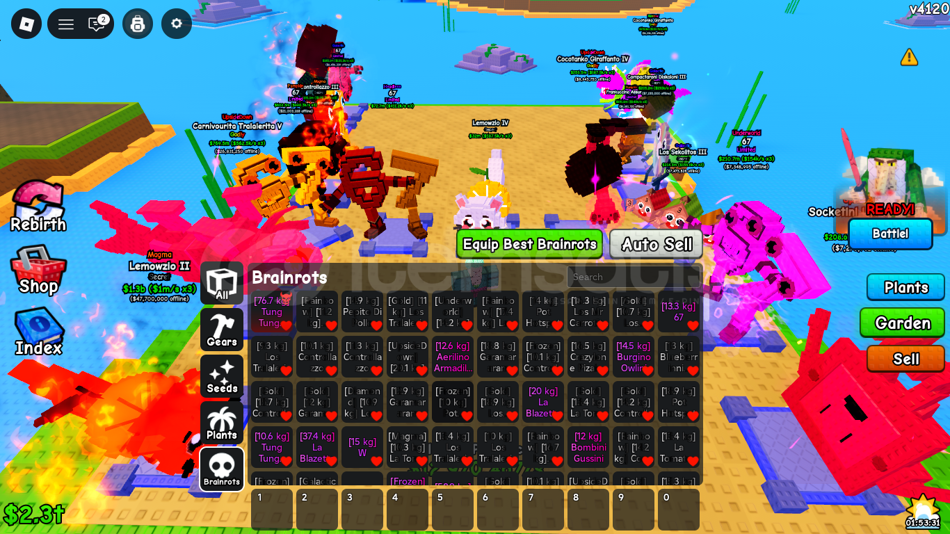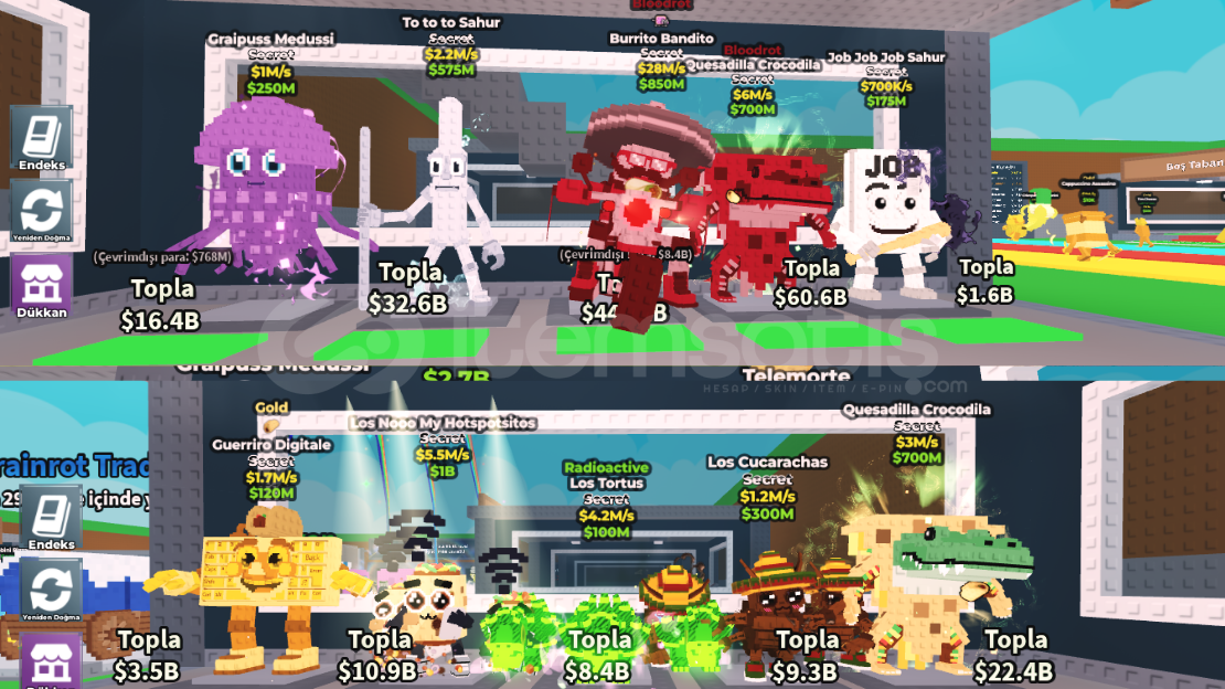 Steal a Brainrotda 21 tanesi hesapta bulunmakta üstüne 10 taneside yan hesaptan verilecektir yani toplam 31 adet Brainrot verilecektir artı Plant vs Brainrotta baya secret ve plant bulunmakta sonra grow a gardende bilmediğim bir sürü şey siz bakarsınız resimlerden birde blox fruıt tiger main 975lvldir