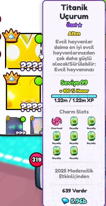 Titanlarımız 99 level ve full charmlıdır bu ilanı gördüyseniz profilime girmenizi öneririm bundan başka çok titan mevcuttur :)
