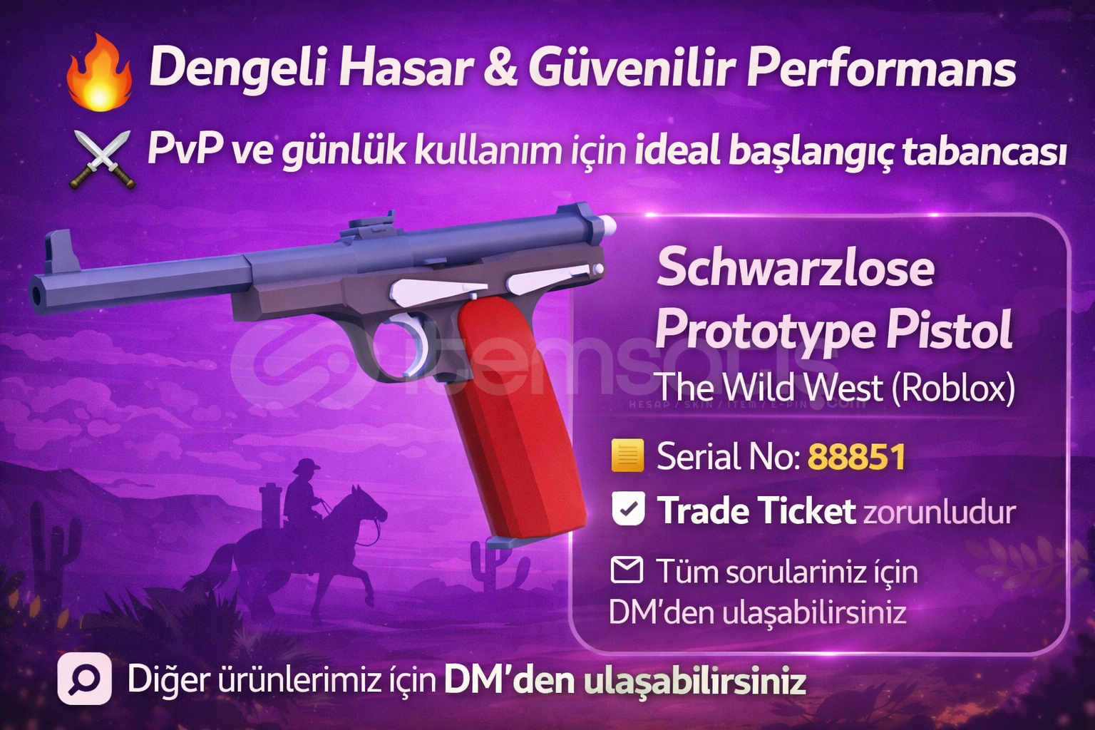 🔥 Dengeli Hasar & Güvenilir Performans ⚔️ PvP ve günlük kullanım için ideal başlangıç tabancası🔫 Schwarzlose Prortotype Pistol – The Wild West (Roblox) 🔢 Serial No: 88851📄 Trade Ticket zorunludur📬 Tüm sorularınız için DM’den ulaşabilirsiniz 🔎 Diğer ürünlerimiz için profilimizi ziyaret edebilirsiniz
