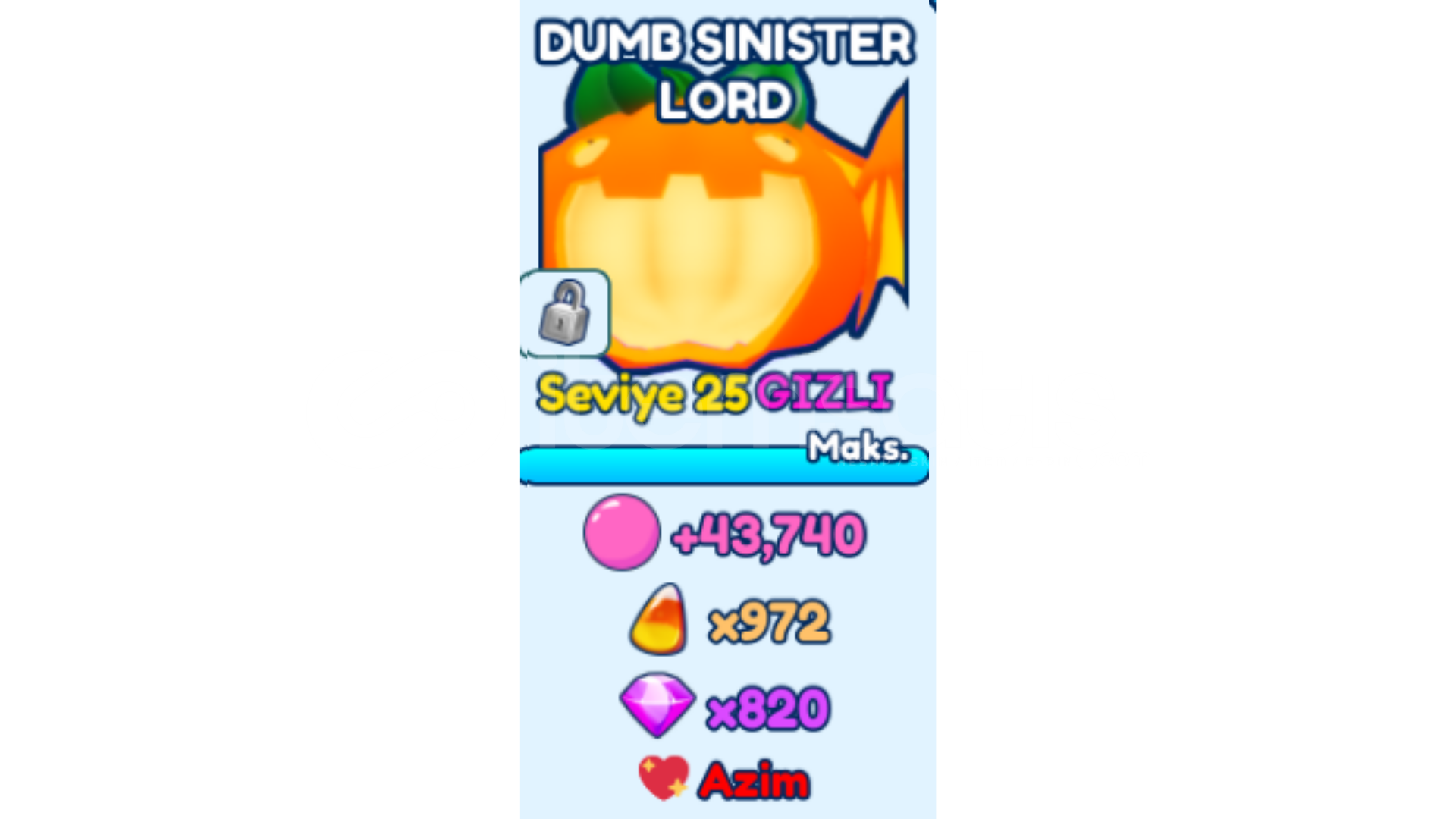 🥚Peti teslim alabilmeniz için oyun içi 2000 yumurta açmış olmanız gerekmekte.🥚Petin Şansı 1 in 10,000,000,000 dir.💎 1 Adet SECRET DUMB SINISTER LORD verilir📖Pet verilmeden önce İstek üzerine, istediğiniz enchant basılır🎮 Pet Bubble Gum Simulator İnfinityde verilir.✔️ Kimlik onaylı satıcı rozeti(Güvenilir hesap) vardır. s...