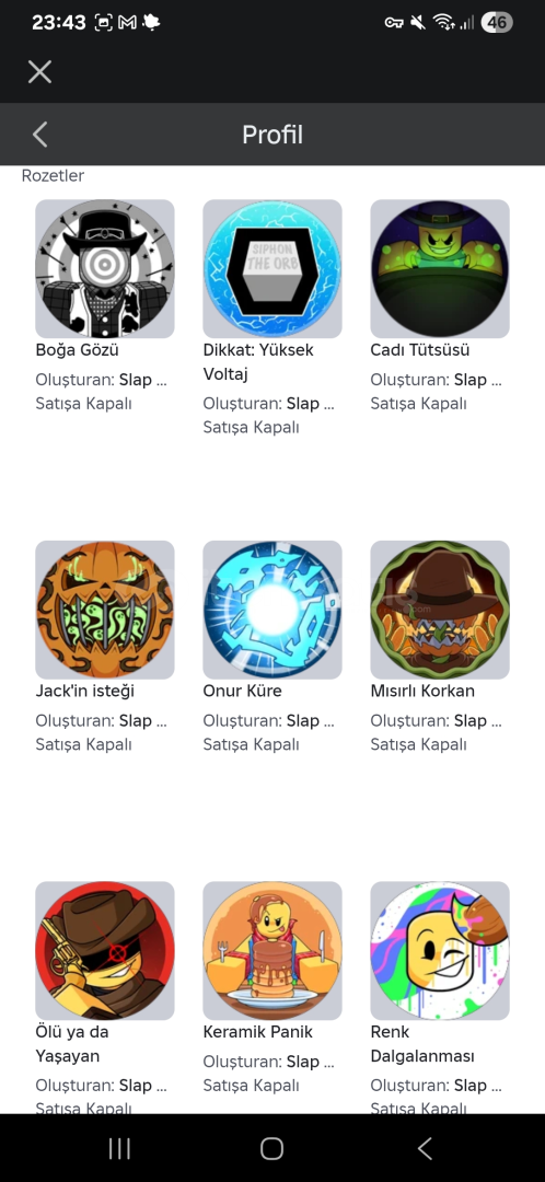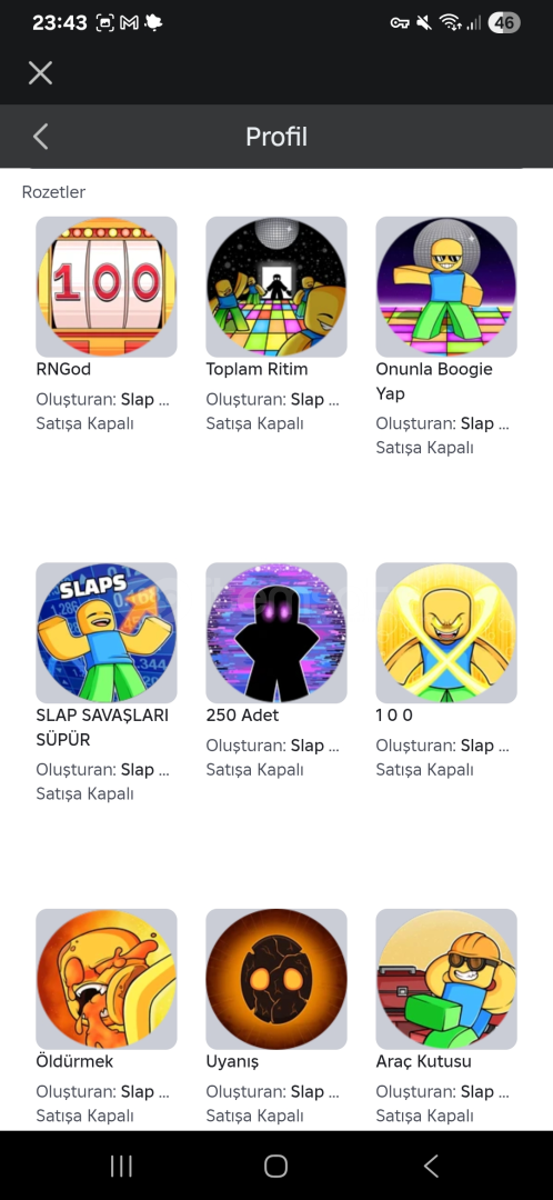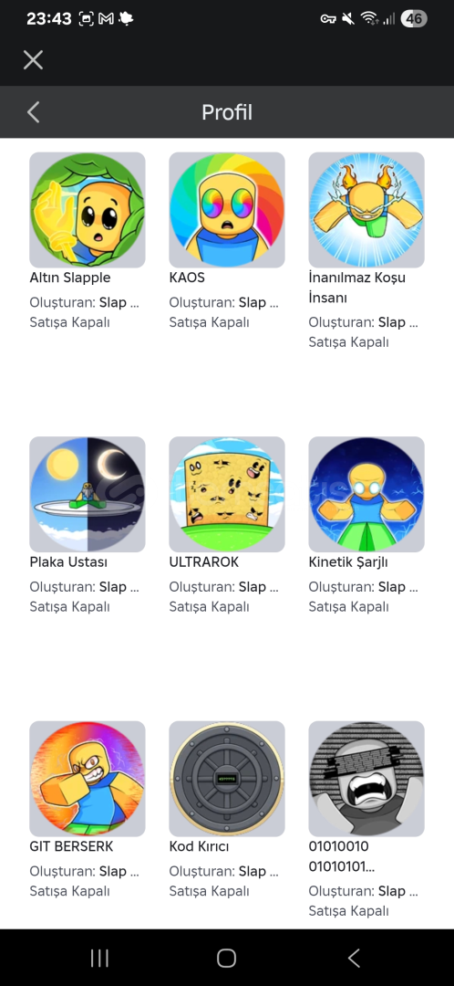 SLAP BATTLES BOL BADGELİ HESAP TEK EKSİK BADGELER SLAP ROYALE GLOVELERİ Chritsmas gloveleri Conker Diğer hepsi vardır sorunuz olursa yazabilirsiniz indirim yapılır Slap sayısı:115k