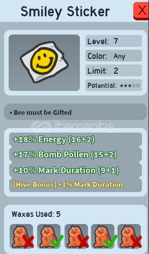Kovanınızın verimliliğini artırmak ve stratejinizi güçlendirmek için ihtiyacınız olan Smiley Sticker Beequip satışta! Özellikle Red Hive ve White Hive oyuncuları için büyük önem taşıyan bu ekipmanla rakiplerinizin önüne geçin.