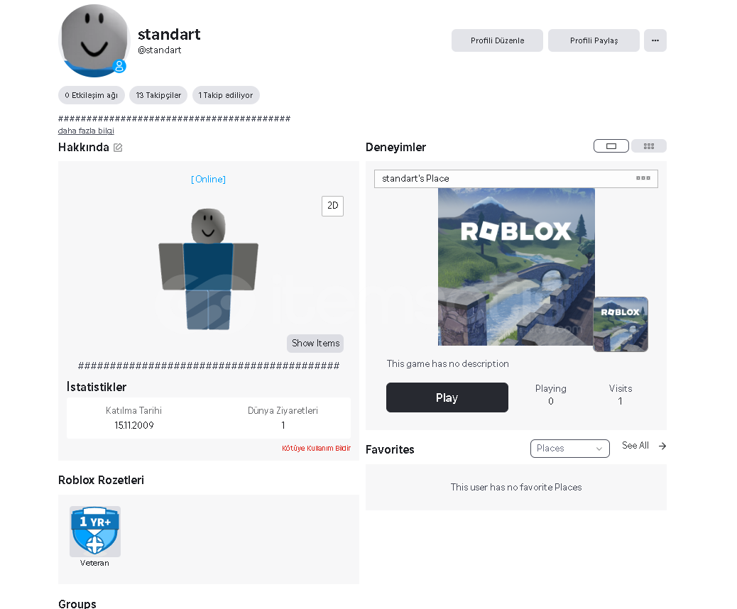 hesabın isimi çok değerlidir standart kelimesi global bir kelimedir 2009 tarihli olması ve mailsiz olması buna ekstra değer katar