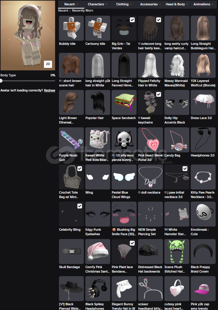 Hesap İçerisinde Fazlalıkla Kız Avatarlar İçin Uygun Kız Aksesuarları Mevcuttur. Bu Aksesuarlar İle Çeşitli Karakterler Yapabilirsiniz.