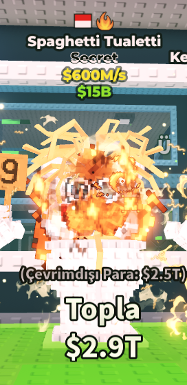 ÜRÜN HAKKINDA GENEL DETAYLAR ;Satın Aldıktan Sonra Bana Kullanıcı Adınızı Yazmanız Yeterlidir.Oyun içinden 1 adet Spaghetti Tualetti 600M/S verilecektir.Toplu alım için dm üzerinden ulaşabilirsiniz.Private Serverda teslim edilir.Oyunda bulunan en nadir secretlerden biridir.Satın aldıktan sonra kayıt açmayı unutmayınız.
