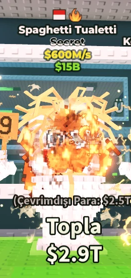 ÜRÜN HAKKINDA GENEL DETAYLAR ;Satın Aldıktan Sonra Bana Kullanıcı Adınızı Yazmanız Yeterlidir.Oyun içinden 1 adet Spaghetti Tualetti 600M/S verilecektir.Toplu alım için dm üzerinden ulaşabilirsiniz.Private Serverda teslim edilir.Oyunda bulunan en nadir secretlerden biridir.Satın aldıktan sonra kayıt açmayı unutmayınız.