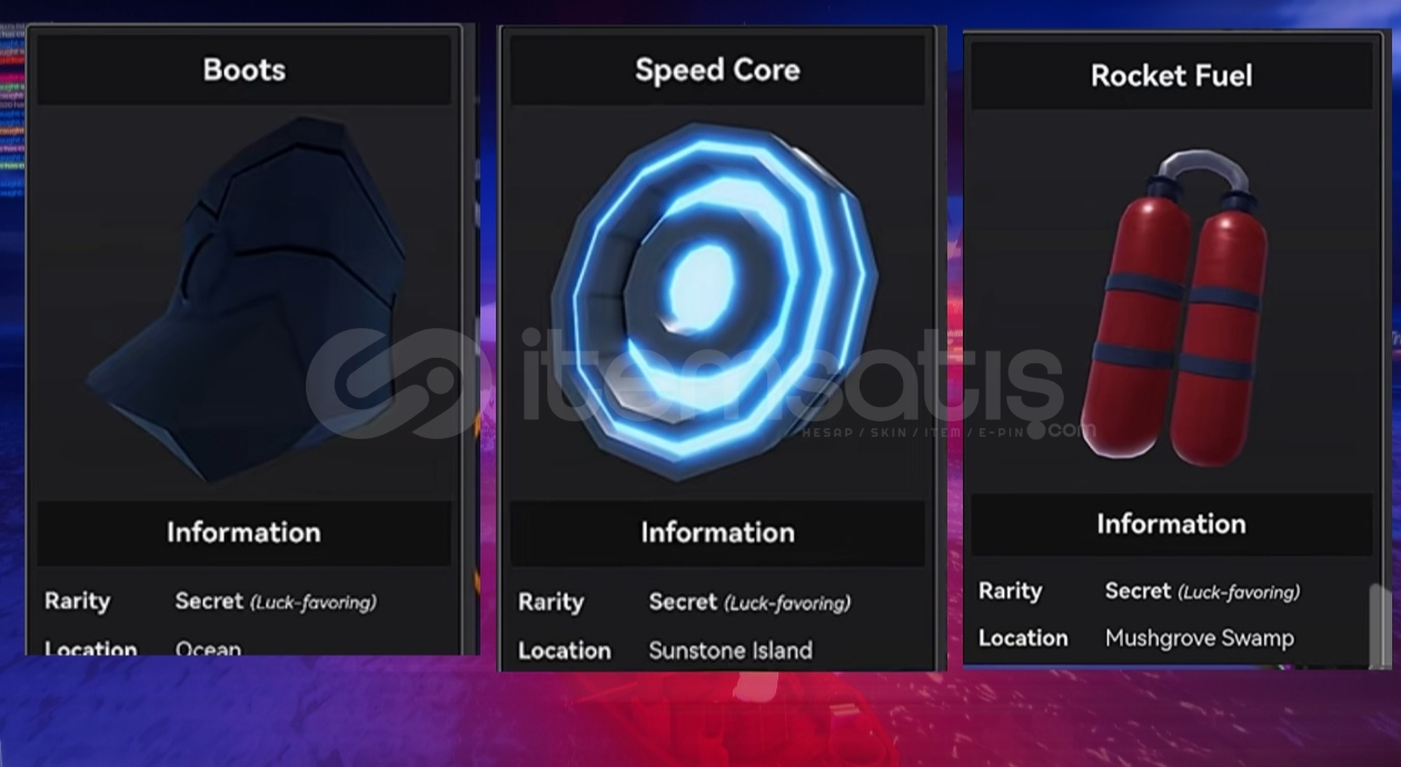 FischSpeed Boots için gereken itemleri satıyorum•Boots•Rocket Fuel•Speed CoreAlan kisiye hayırlı olsun