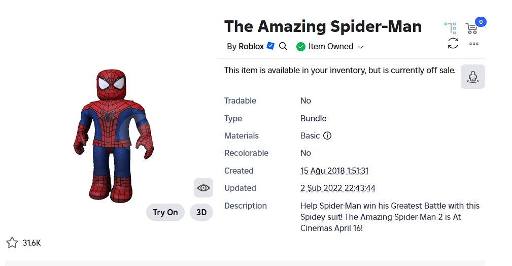 • Hesapta orjinal The Amazing Spiderman seti vardır.