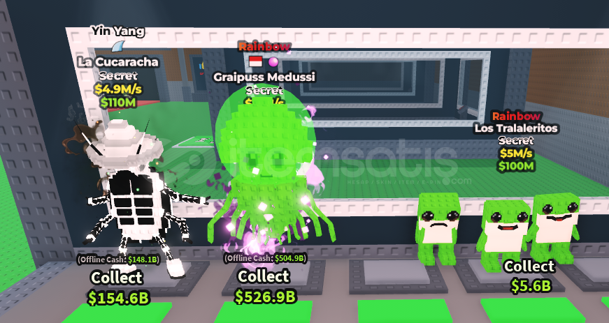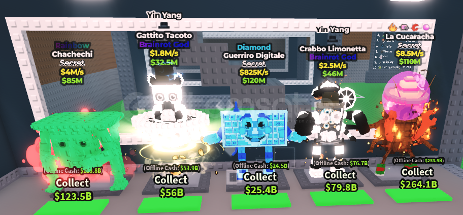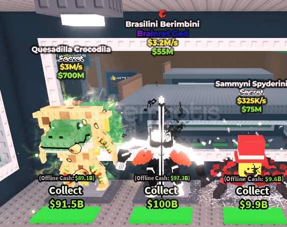 11 i secret, geri kalan 3 ü ise brainrot god enderliğindedir. Bu brainrotlar: