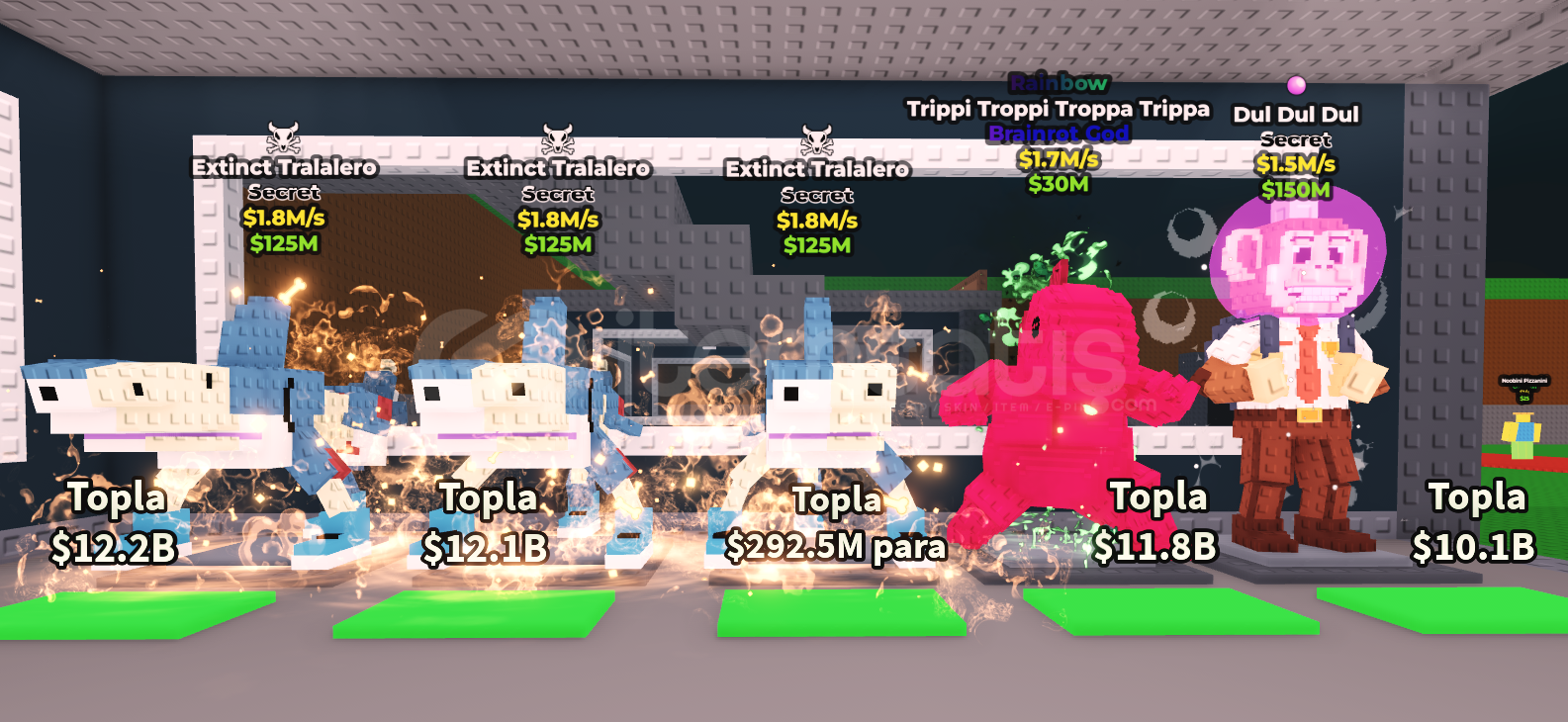 içindekiler=3 Adet 1.8M/s Extinct Tralalero 1 Adet 1.7M/s Trippi troppi troppa trippa 1 Adet 1.5M/s Dul Dul Dul
