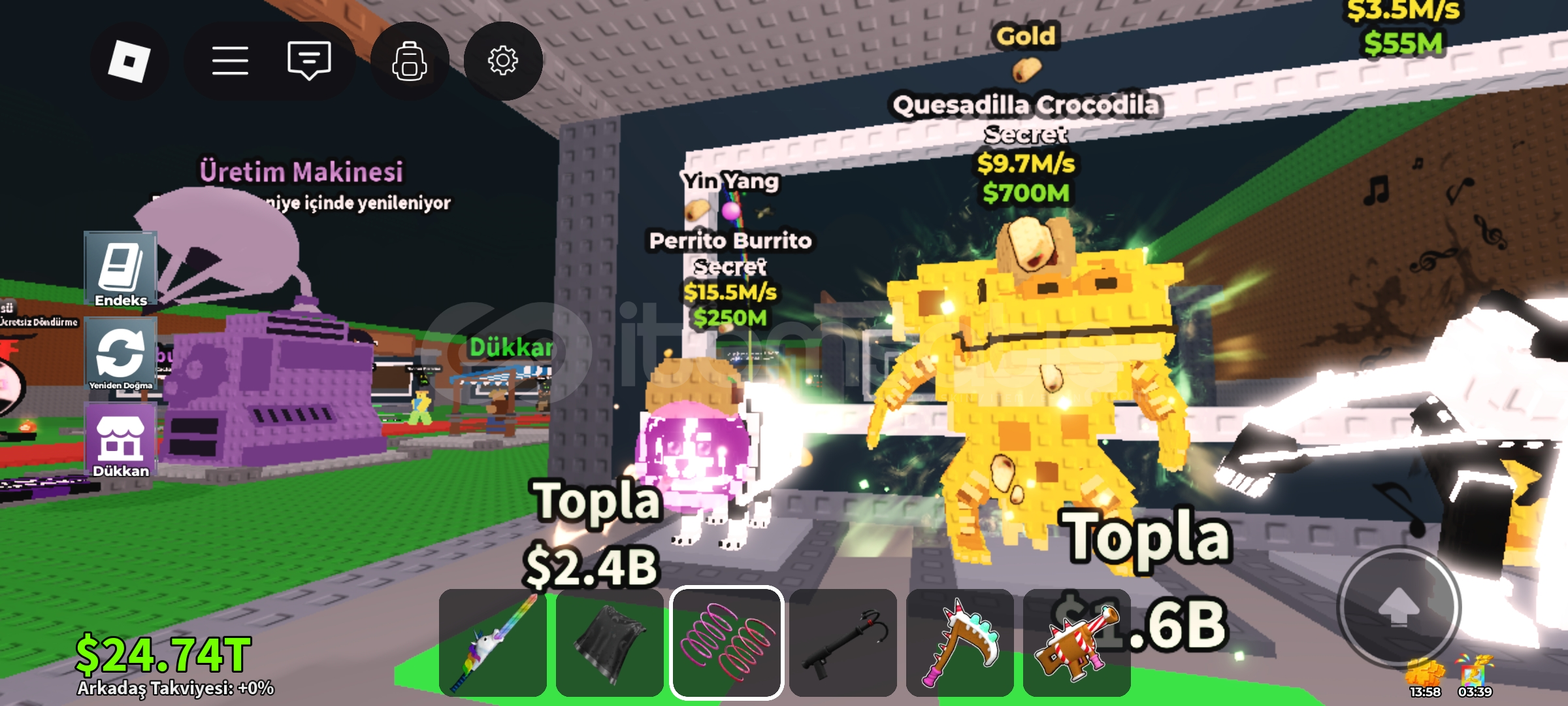 😎 Oyununu uçuracak Secret Pet ve Gold karakterler!💰 Dakikada milyonlarca kazanç🐾 Koleksiyonluk + güçlü set bir arada!⚡ İnanılmaz hızda kazanç: $15.5M/s – $9.7M/s💎 Rare + Secret özel itemler🎮 Direkt teslim, güvenli alışverişSecret Perrito Burrito 🐾Secret Quesadilla Crocodila 🐊