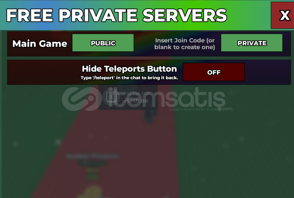 🎮 Görsellerde ne varsa, tam olarak o oyunu alıyorsunuz, hiç bir farklılık bulunmamakta.✨ Bu paketle:– Oyunu istediğiniz gibi düzenleyin,– Arkadaşlarınızla paylaşın,– Üzerine ekleme yaparak kendinize göre geliştirin.📌 Roblox Studio'da direkt açınca tam çalışmayabilir. Yayınlayarak test edin. 'Unavailable' hatası alırsanız, bir ...