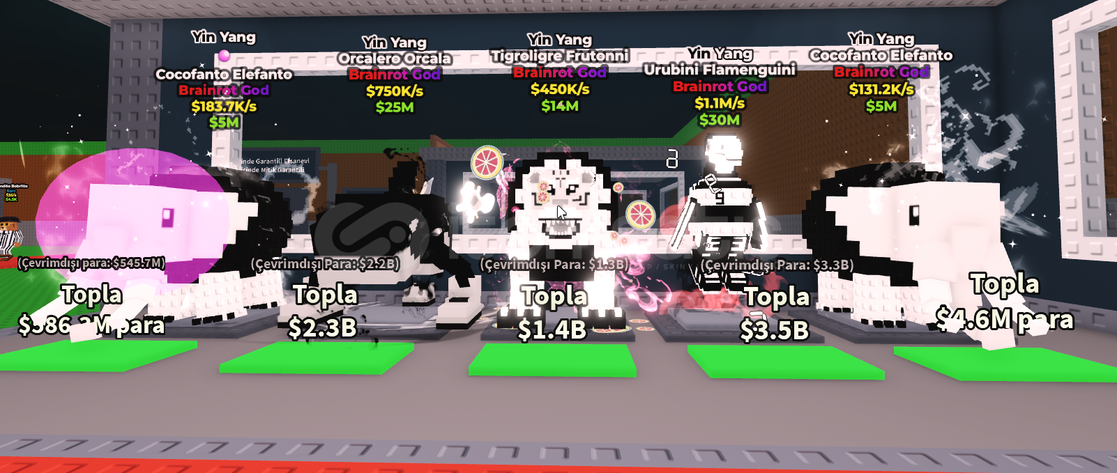 BU KOLEKSİYONDA 6 YİN YANG MUTASYONLU BRAİNROT GOD VARDIR VE BUNLAR:1-Cocofanto Elefanto(Bubblegum mutasyon ilave)2-Orcalero Orcala3-Tigroligre Frutonni4-Urubini Flamenguini5-Cocofanto Elefanto6-Alessio