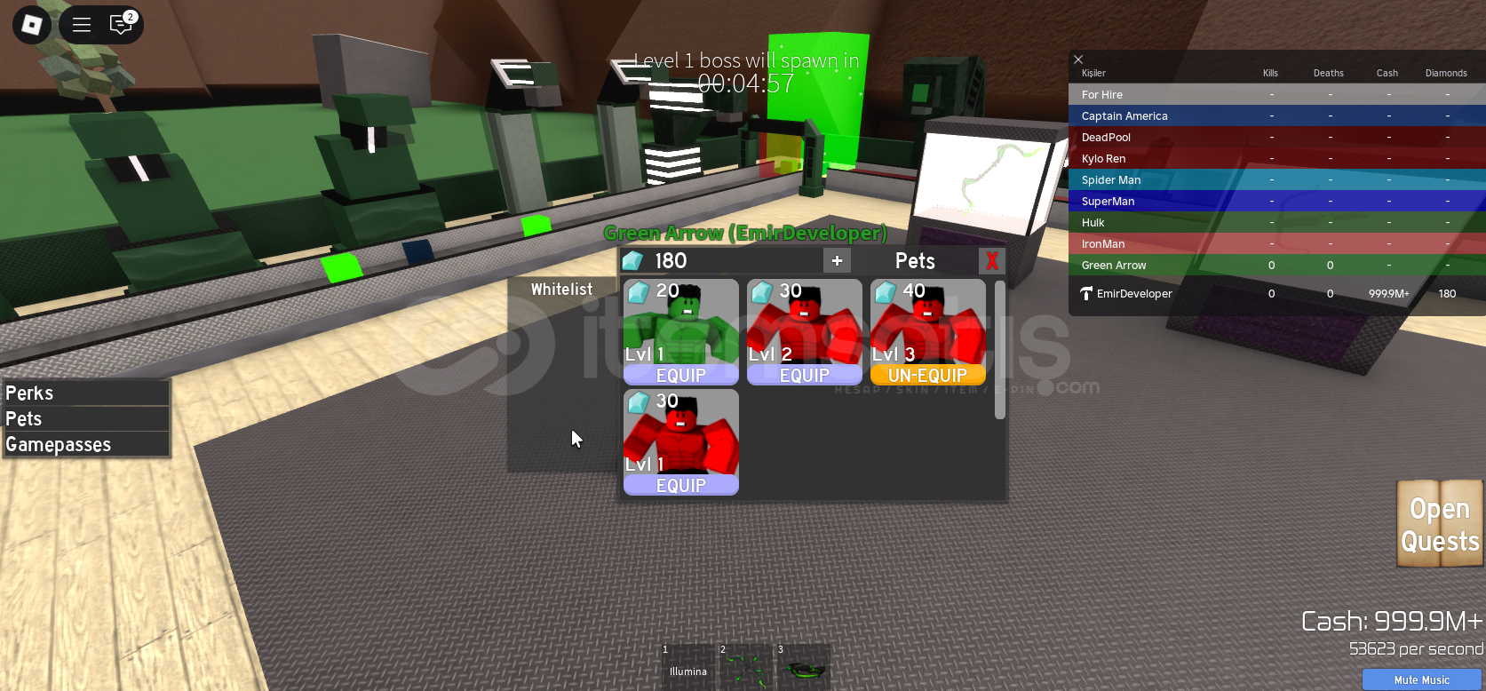 SuperHero Tycoon oyununun full versiyonunu veriyorum.Gamepass’lerin ID’lerini ve satın alınabilen öğelerin (örneğin gems) ID’lerini değiştirmeniz gerekiyor.Boss spawn olduğunda oyunculara saldırmıyor, bu hatayı düzeltmeniz gerekiyor. Script hatası çıkarsa da kendiniz müdahale etmeniz gerekebilir.Bazı silahların efekt veya animasyonları eksik, bunları kendiniz eklemeniz ya ...