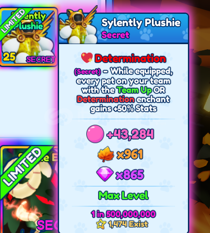VALUE DEĞERİ ÇOK YÜKSEK OLAN KALİTELİ STATS DEĞERLERİNE SAHİP MÜKEMMEL BİR SECRETTİR.TRADE YAPIP BİR SÜRÜ SECRET ALABİLİRSİNİZ.DAHA UCUZU YOK. HIZLI TESLİMAT.2000 yumurta açmış olmalısınız.EVENT STATSLARI MÜKEMMEL.