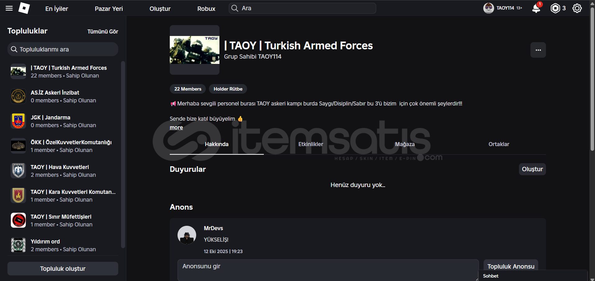 TAOY Turkish Armed Forces gruplarını yönetim olarak bazı sebeplerden satışa çıkarıyoruz 8 grup teslim edilecektir ZARARINA SATIYORUZ PAZARLIK PAYI YOKTURDaha fazla bilgi için bana ulaşabilirsiniz(Belki İndirim Yapılır)
