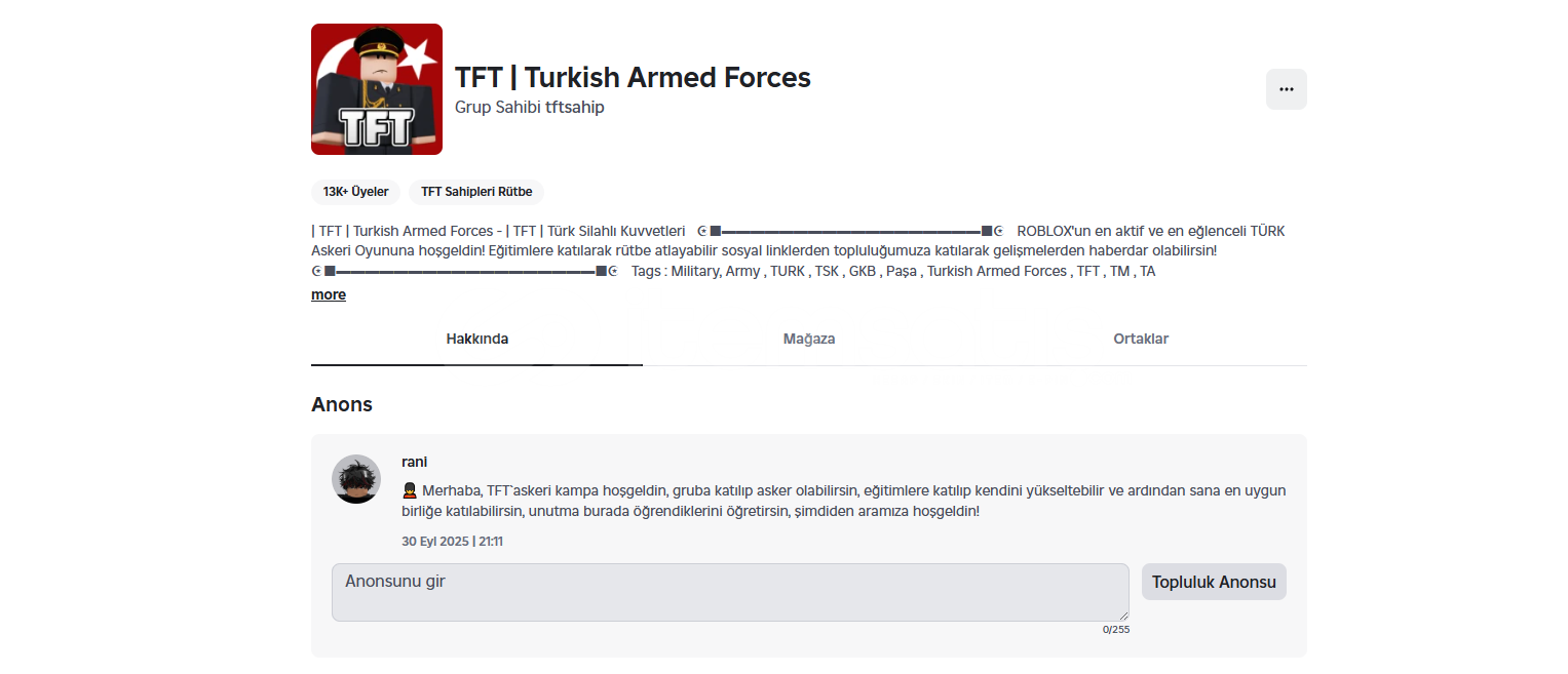 TFT 13.5K ÜYELİ AKTİF ROBLOX ASKER OYUNU SON FİYAT