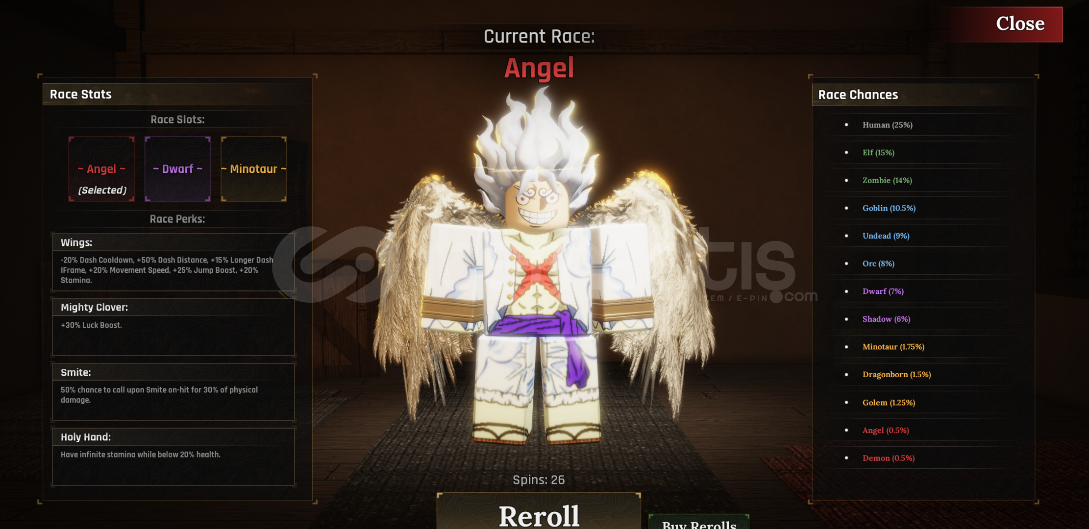 ANGEL RACE VE EN YÜKSEK LUCK BOOSTLU PİCKAXE BULUNMAKTA
