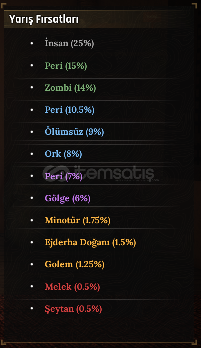 Hesapta e-posta mevcut olmamaktadır istediğiniz gibi koyabilirsiniz (Şeytan En iyi ırk )Şeytani Güçler:20% Hareket Hızı, +20% Saldırı Hızı, +20% Fizik Hasar, +20% Daha Güçlü Ateş Hasarı, 30% Yükseklik, +10% Genişlik ve Derinlik.Backfire:Hasar alındığında düşmanı yakma olasılığı 25%.Lanetli Aura:Dövüş halinde etrafında k...