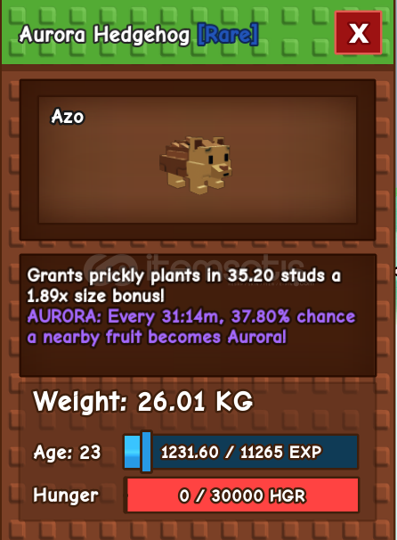 TITANIC AURORA HEDGEHOGAURORA MUTASYONUNA SAHİPTİR. 3.22 İHTİMALLE ÇIKAN OLDUKÇA NADİR BİR MUTASYONDUR. ÜZERİ MAVİ, MOR, BEYAZ TONLARINDA PARLAR.MAX AGE OLDUĞUNDA 86,70 KG'YE ULAŞACAKTIR VE TITANIC GRUBUNA GİRECEKTİR.7/24 AKTİFİM, SATIN ALABİLİRSİNİZ.
