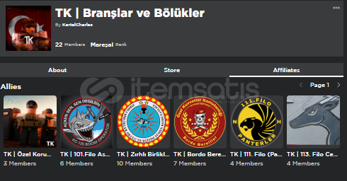 27 Gruplu hepsinde roller full.İçinde grupta 4-5 tane map vardır.Tim grupları ve family de bulunmaktadır.Maplerde hiç bir yerde bulamayacağınız araçlar mevcuttur.Tim gruplarında da roller hazırdır.Maplerden bir tanesi aktifdir girip oyuna bakabilirsiniz.https://www.roblox.com/groups/15205615/TK-Turkish-Armed-Force#!/aboutLütfen ciddi alıcılar yazsın.Grubu alacak kişi hiç bir şekilde bir &#...