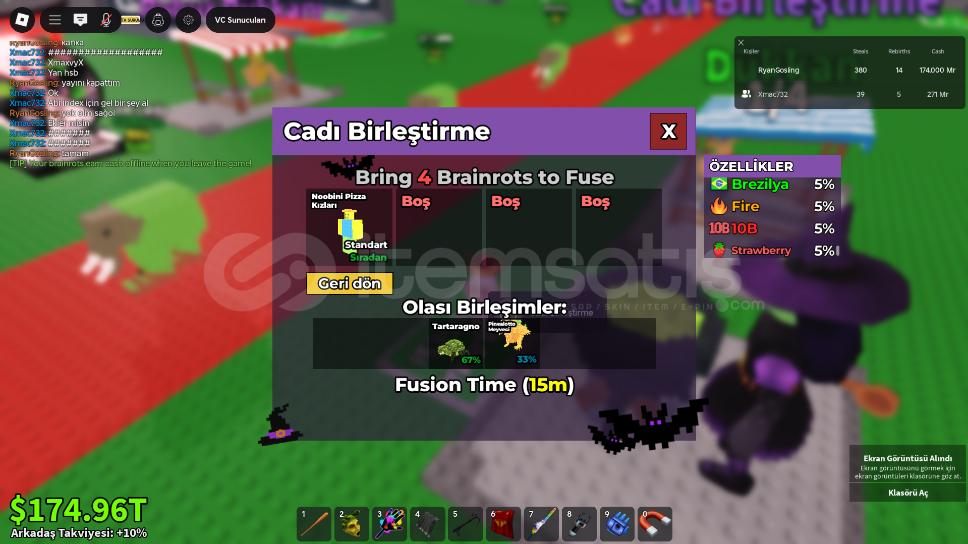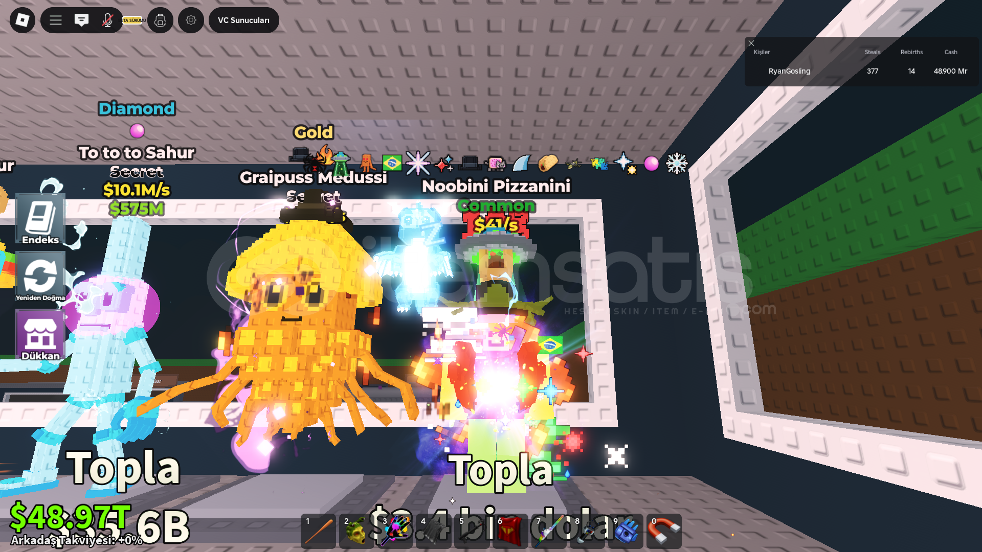 Toplam Olarak 23 Efekti VardırAyrıca Strawberry Yane Oyundaki En Nadir Efekt Vardır Yukarıdaki Efektler Kısmında Gözükmüyor. Fakat Brainrotun Body Kısmı Çilek Temalı Ve Çilek Sapı Var Kafasında.Tr'de İlk Olabilir Olmayadabilir Ama Koleksiyon için Mükemmel Brainrot.İlanı Satın Almadan Önce Bana Yazın Ve Cevap Vermemi Bekleyin!