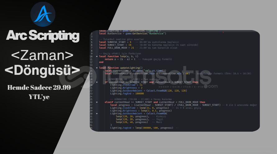 Kodun Özellikleri >>> İstediğiniz (TÜRKİYE SAATİNDE) Saatte Havanın Nasıl Olcağını Ayarlayabilirsin>>> Oyununa Gerçekçi Bir Hissiyat katarsın>>> Oyunu Kastırmaz >>> İsteğe Göre TR Dışı Ülkelere Göre Yada istediğin Dakkaya göre ayarlayabilirsin 9DK GECE SÜRSÜN 10DK Gündüz gibi !